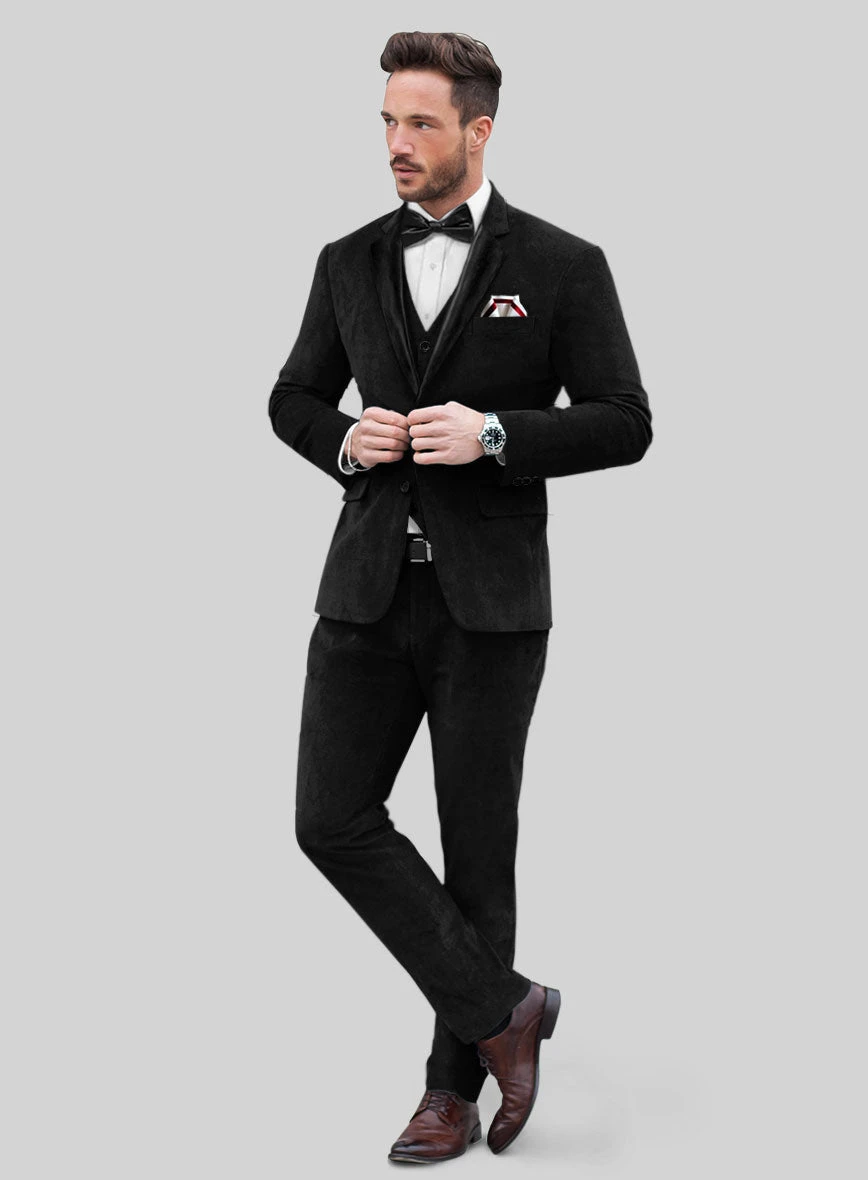 Nothing says elegance like the classic tuxedo, so pick our chic Black Velvet Tuxedo Suit and have your evening wear elevated to a truly sophisticated style. Crafted from cotton, the polished tuxedo suit is the quintessence attire for a man seeking a positive impression at a black tie affair. The velvet construction of the suit will help to redefine your style.
