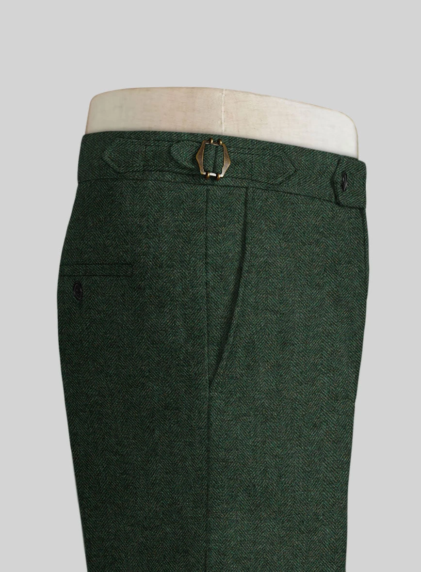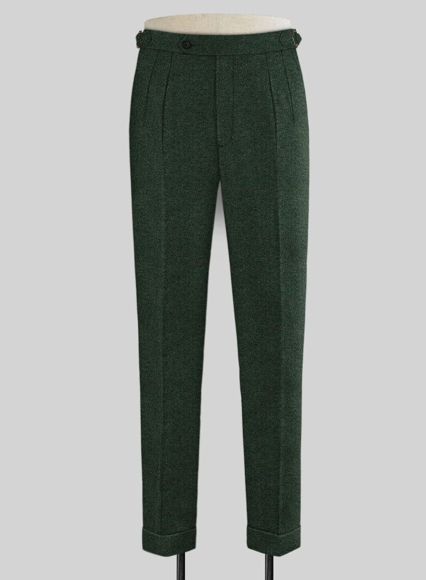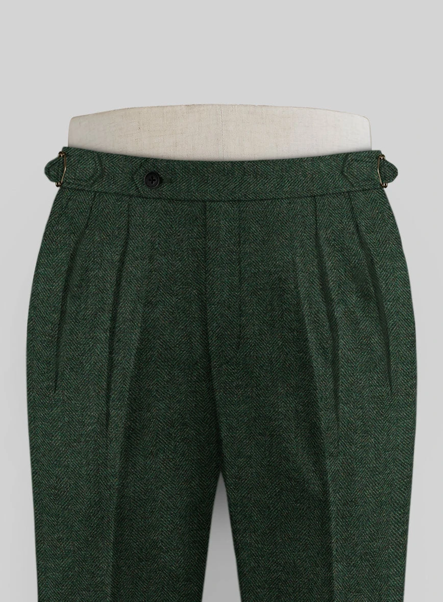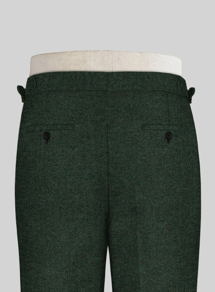 Make an entrance in our Bottle Green Herringbone Tweed Highland Trousers that aren’t afraid to let their true colors fly. Crafted from wool, these trousers feature a herringbone pattern that develops a bit of texture and mystique, while its bottle green color places itself in the super suave category, making it ideal for a distinctive appearance.