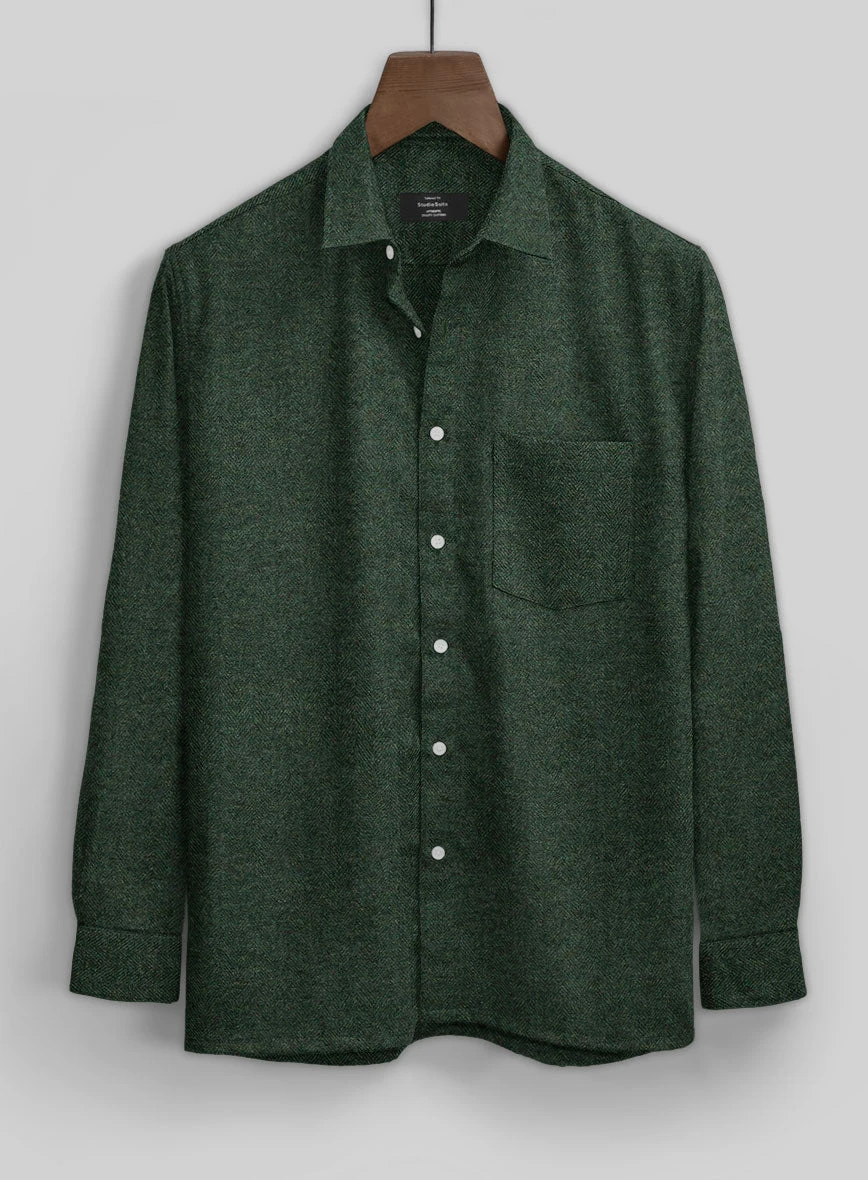 With a subtle and modish tweed shirt, dive into the comfort zone with our Bottle Green Herringbone Tweed Shirt that commemorates your winter affairs with a cool herringbone pattern that exudes refreshing vibes.
