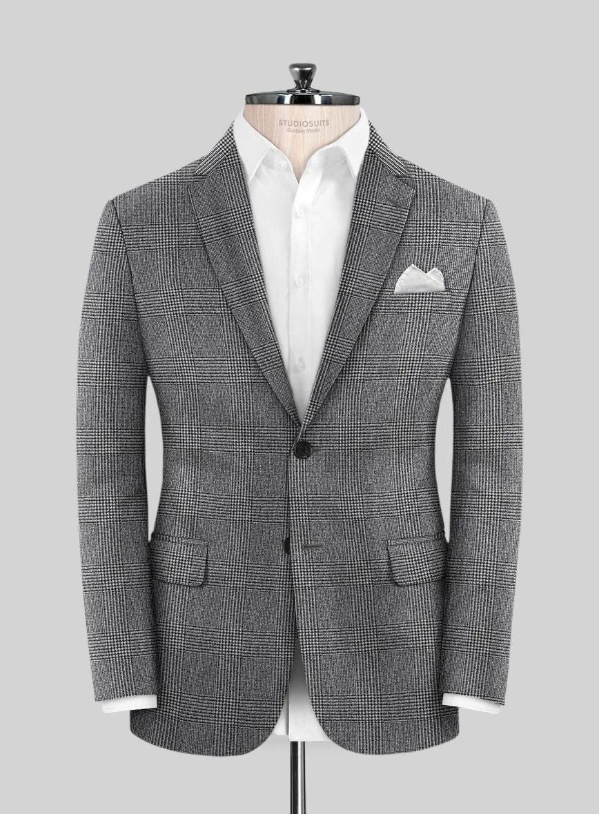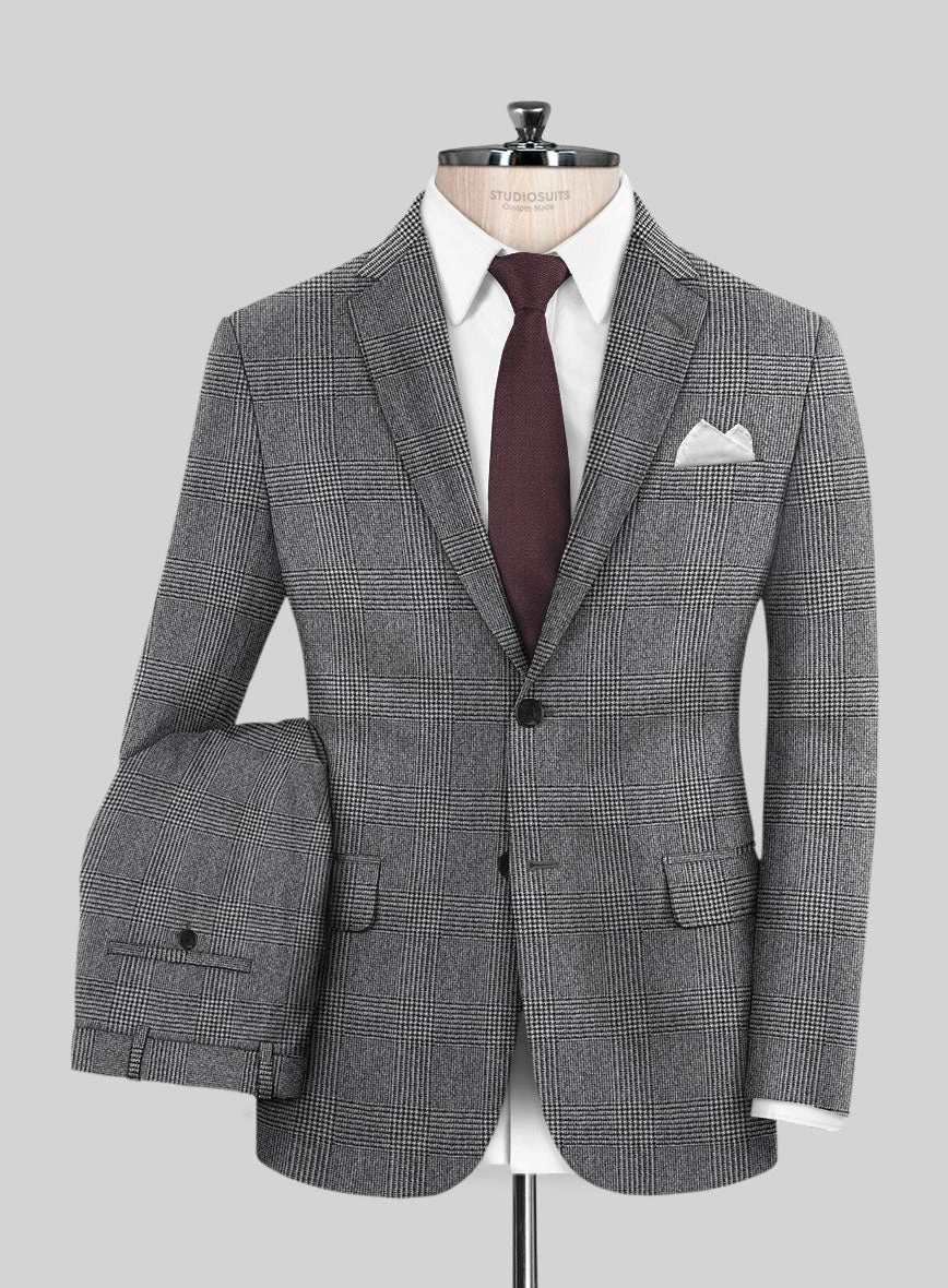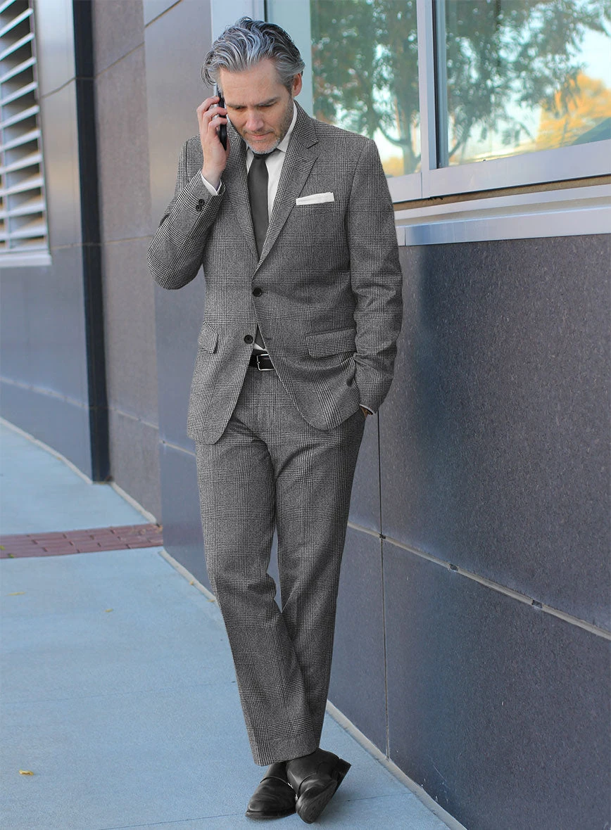 - Caccioppoli Alage Glen Gray Wool Fabric