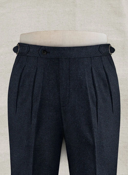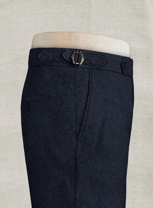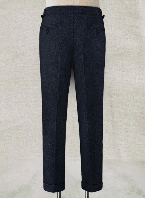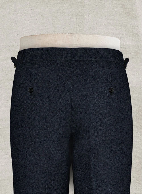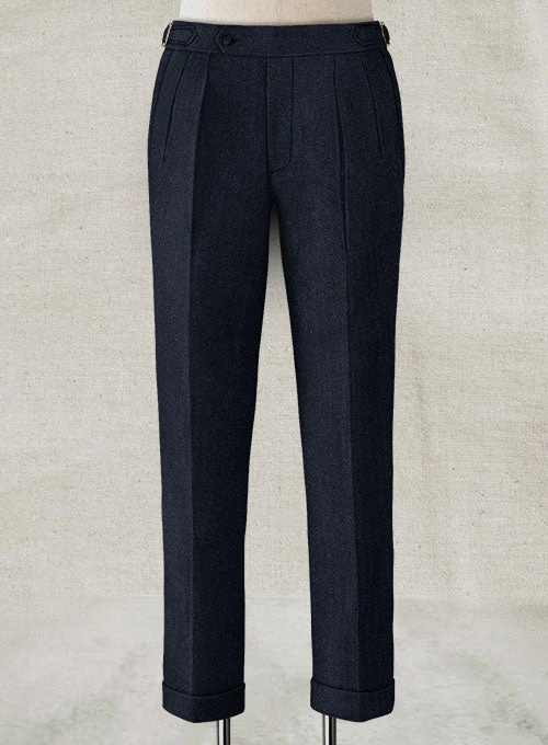 Elevate your formal appeal with our Deep Blue Herringbone Highland Tweed Trousers. Crafted from pure wool herringbone weave in deep blue, the tweed trousers offer contemporary tailoring at its finest.