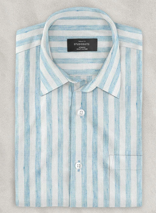 Are you in a constant dilemma about what to wear when you need a fabulous outfit to display your fun-loving attitude? Then opt for our Dublin Blue Stripe Linen Shirt that helps you to make a confident statement.