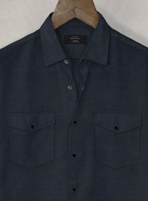 Twist your casual wardrobe with our European Dark Blue Linen Western Style Shirt and lend a distinctive look to this classic shirt.