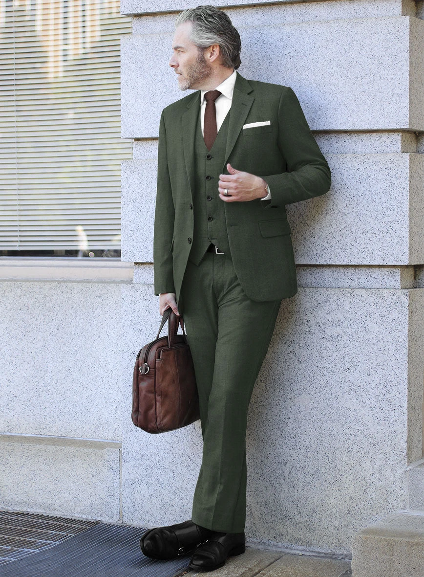 Bring a signature of sharp and upper-class refinement to your office wear or a sophisticated yet tasteful attire for exclusive events with our Fresco Green Wool Suit, imbued with all the hallmarks of luxury. Meticulously tailored from the finest wool, our suit meets every detail of stunning with its crease-resistant trait and the green hue will lend you a regal and fresh upgrade. So adorn your dapper looks with the grace of our suit that readily accentuates your impressive personality.