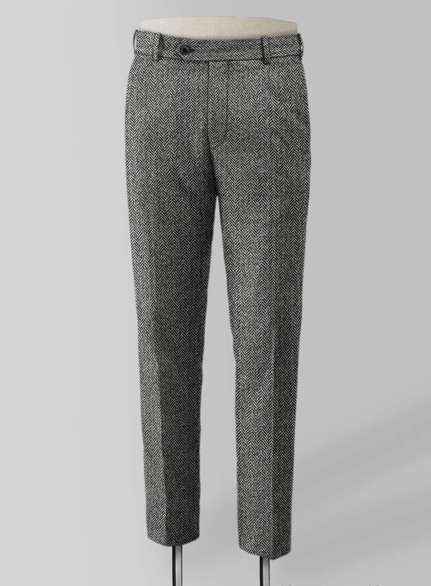 Stay in a luxurious spotlight with the addition of our Harris Tweed Gray Chevron Pants that conveniently amplifies the ethos of charm. However, it is tailored from pure wool fabric, which offers dense, heavy and coarse textures that carries a superior warmth with a unique herringbone weave over a gray shade. Conquer the cold as winter approaches with the inclusion of our dapper pants, which creates a cozy as well as elegant impression perfect for wintery weekend or formal dressing.