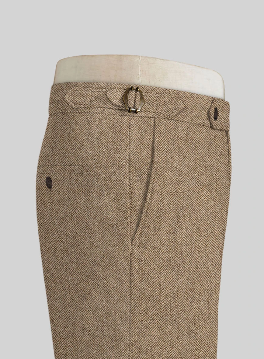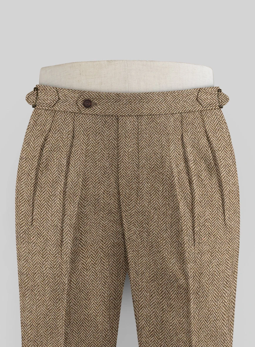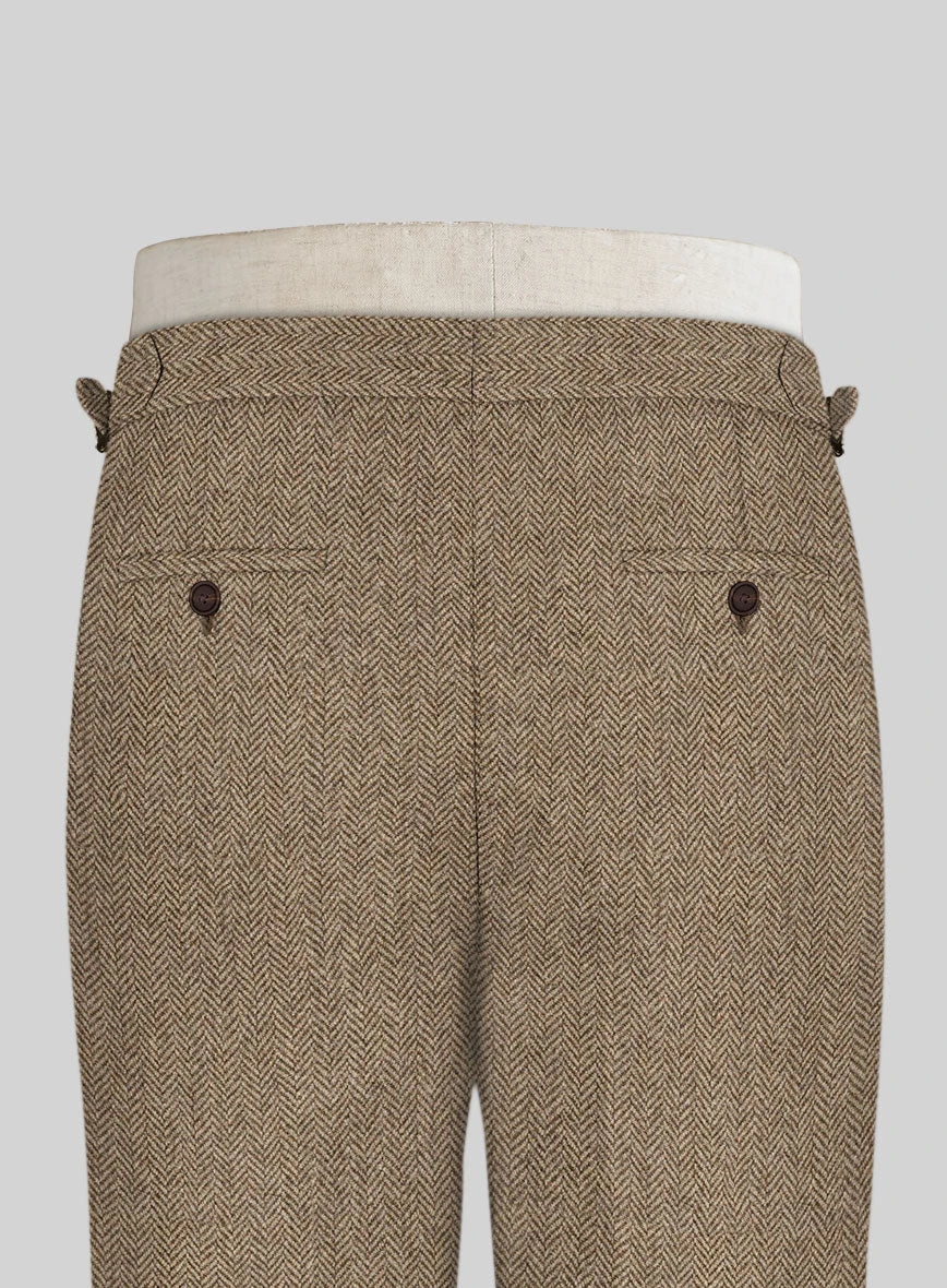 Build the pitch-perfect look with distinctive Irish Brown Herringbone Tweed Highland Trousers that possess a sartorial prowess. Crafted from wool, the trousers with their casual feel and colorful flair are a true sartorial masterpiece that stands out in the best way possible.