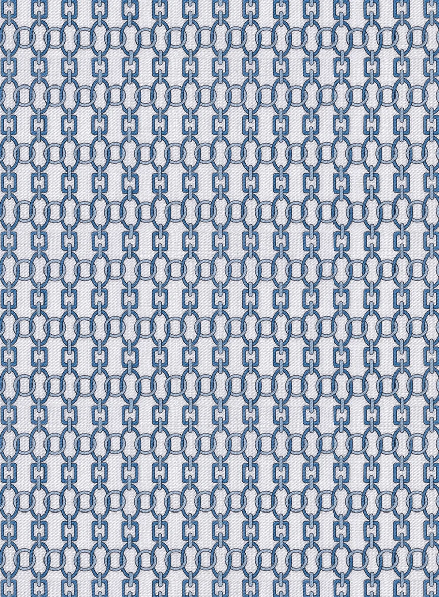 Who says formal clothes can’t be stylish? Introducing our Italian Catena Blue Summer Linen Shirt, a must-have addition to your wardrobe that effortlessly showcases your sharp and professional charm. Tailored from a fusion of cotton and linen fabrics, this shirt features an interconnected chain print in a blue tint over a white canvas that will spruce up any outfit, making you look both suave and modern.