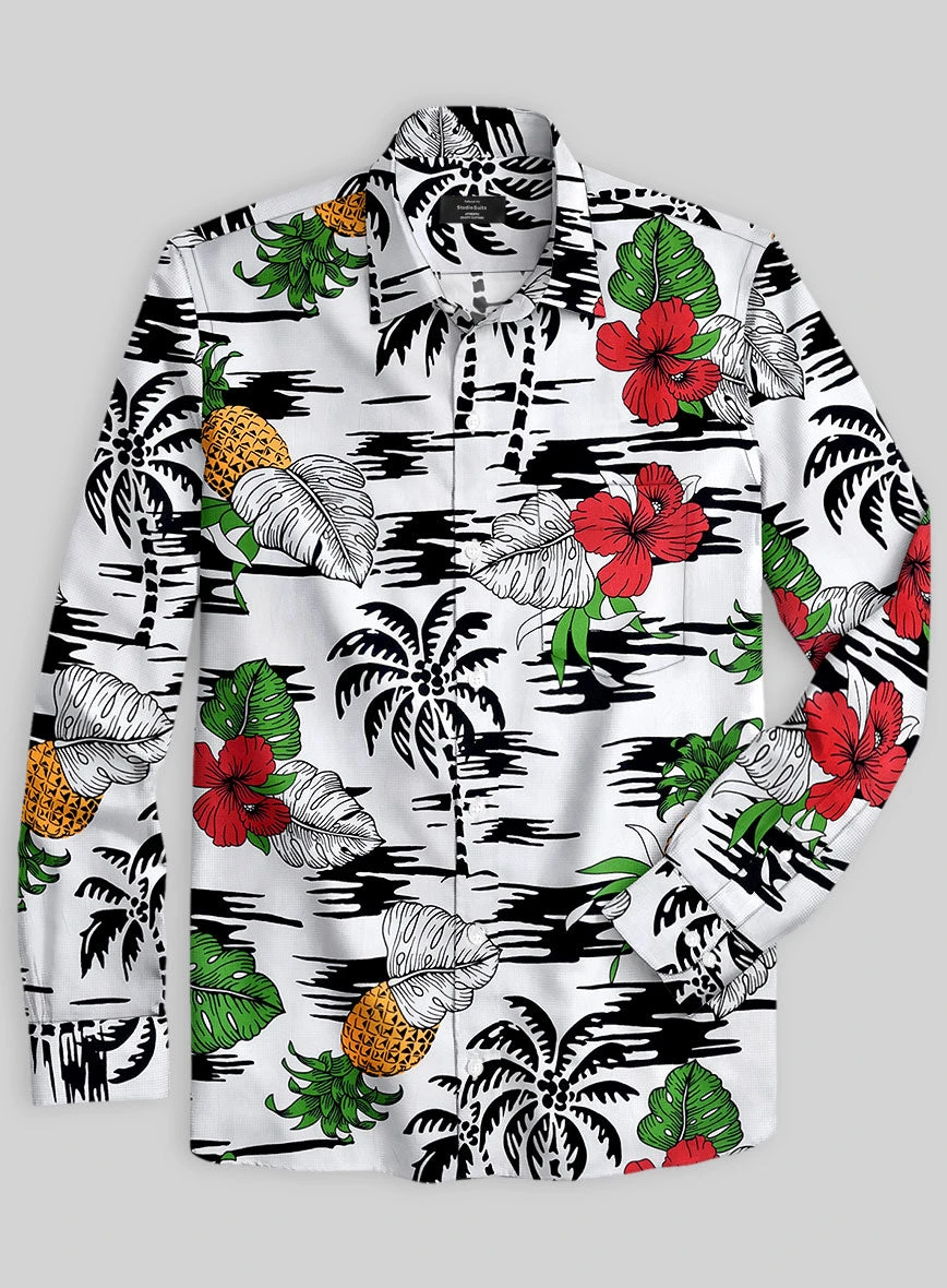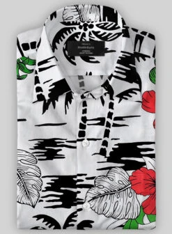 Own our Italian Cotton Hibiscus Shirt that brings a subtle pop of color with vibrant floral details retaining the touch of cool while providing a relaxed feeling while appearing at the beach outings.