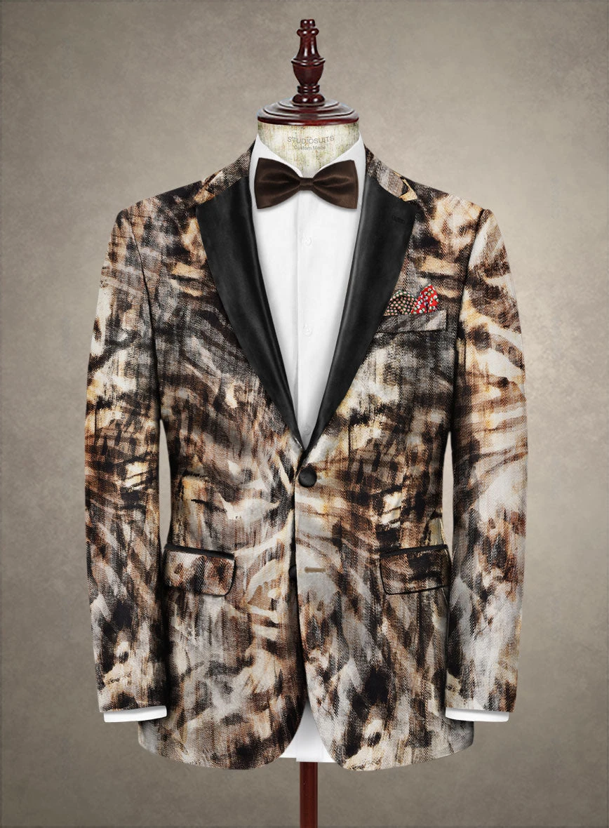 Dive into the realm of sartorial style with our Italian Cotton Stretch Elisa Tuxedo Suit- a daring yet refined masterpiece that transcends conventional boundaries. Meticulously crafted from a blend of luxurious cotton and Lycra, its fusion fabric ensures not only a plush feel against your skin but also allows for unrestricted movement, seamlessly blending comfort with sophistication. Let the splash pattern serve as a visual symphony, resonating with your personality, and make every moment a canvas for self-expression. Whether you’re commanding attention on the red carpet, redefining norms at a formal affair, or making a statement at a black-tie event, this suit stands as your accomplice.