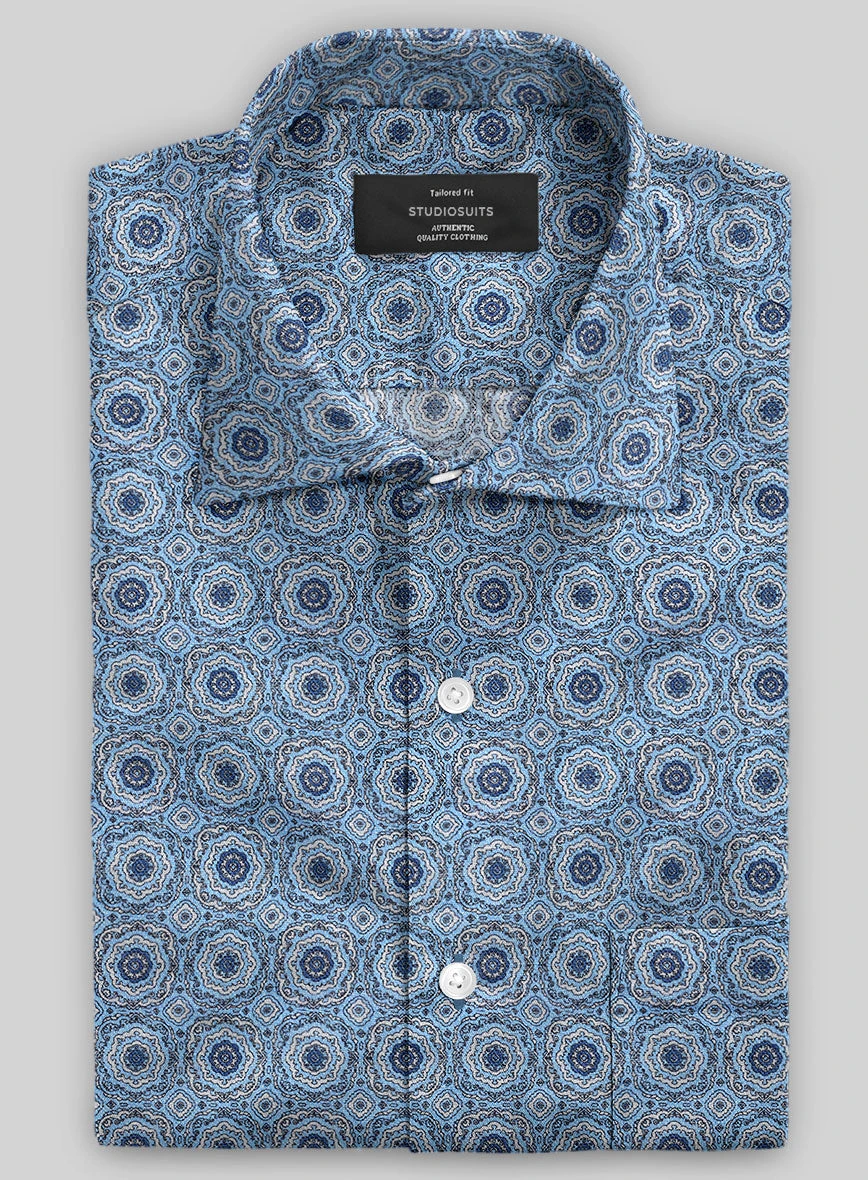 Command attention in this chic Italian Linen Con Shirt that brings swoon-worthy perfection this season. Its pure linen build flaunts a vibrant, head-turning pattern in a calm blue shade that’ll have you looking fly for beach hangs or everyday wear.