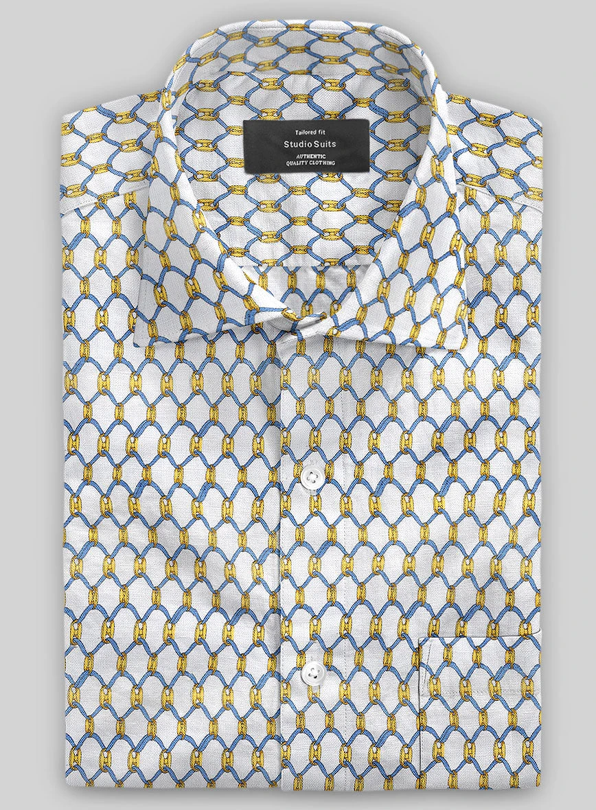 Achieve effortless style and cool comfort this summer with our Italian Linen Corde Shirt. Made with lightweight linen fabric, our shirt has unique blue and yellow patterns that give you a dapper look and a fresh feel all season long.