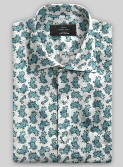 The paisley pattern in blue and brown on a white canvas will have you standing out from the crowd in style. Shine like a star with our linen shirt that will give you the confidence to be charming!
