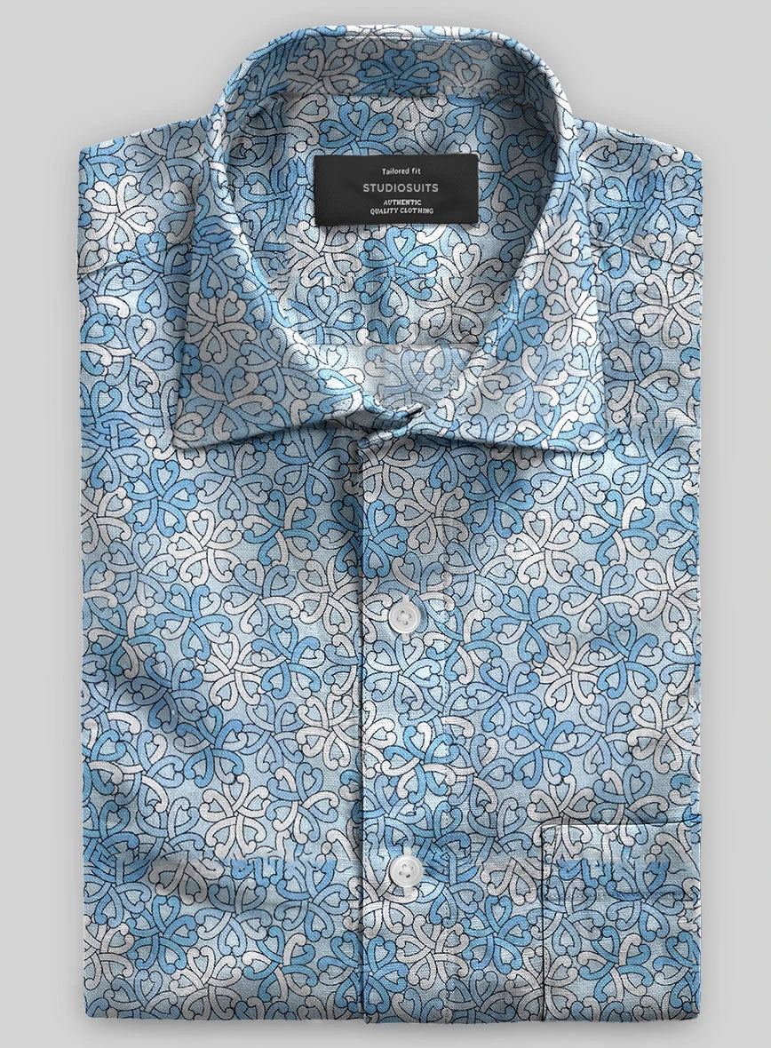 Sitting on a cozy chair and wondering what to wear for your next casual event? Don’t worry; we’ve got your back with our Italian Linen Lanico Shirt. Custom-built from airy linen fabric, its quirky pattern features shades of blue with the addition of a white hue, keeping your style distinct.