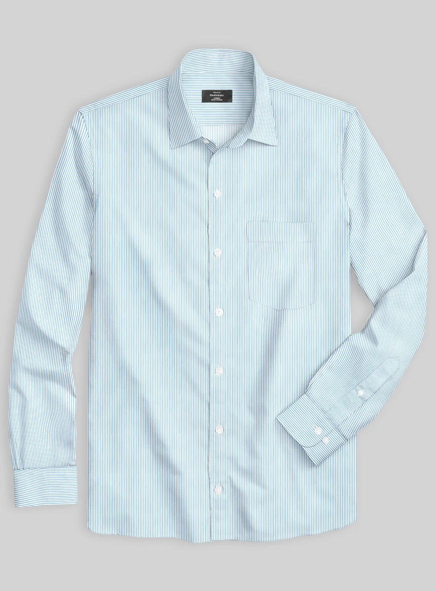 Spruce up the noble subtlety by donning our Italian Lombardo Lily Blue Pencil Stripes Shirt. In addition, the shirt is crafted from a pure cotton fabric, which delivers a brisk, sheer and airy feel with a striped pattern over the white tone.