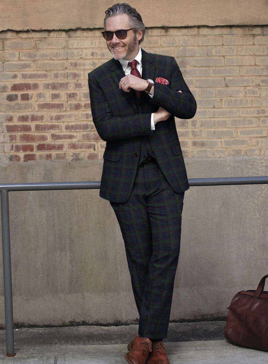 Project your business-like demeanor with a tailored Italian Loza Checks Tweed Suit that conservatively resembles luxury. Crafted with a wool blend, our suit has a solid and stylish plaid pattern of slight green checks over a royal blue framework that will become a favorable piece in your closet. Also, this piece has a comfort feature which is the essence of any couture. So don our suit that fulfills your wish to be in the spotlight on any occasion.