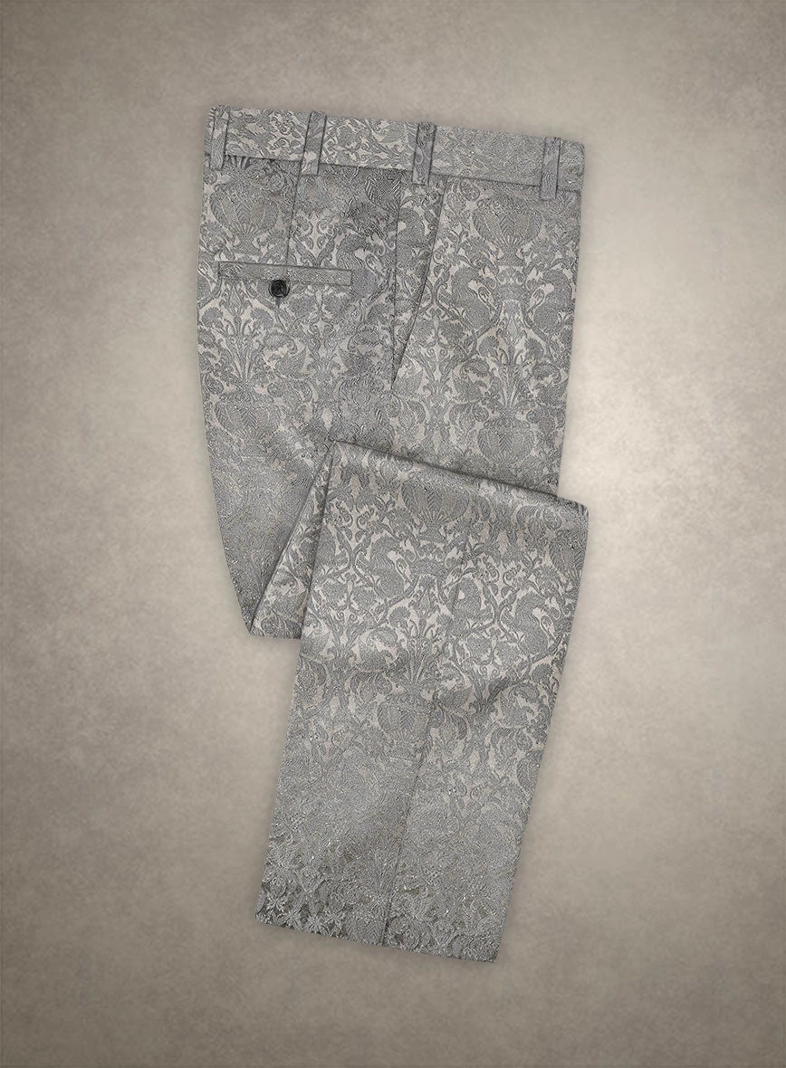Opt for an eternally chic staple by adding our Italian Silk Braiss Pants to your elegant closet. In addition, crafted from a luxurious blend of silk, cotton, lycra and jacquard fabric that grants a rugged, comfy and gleaming layer with coined vintage designs over gray hues. Moreover, claim the epicenter luxury with a clean tailored silhouette that speaks to the elegance and precision of designs while keeping comfort at the top. So, prepare yourself with our flattering pants to take over the red carpet routines.