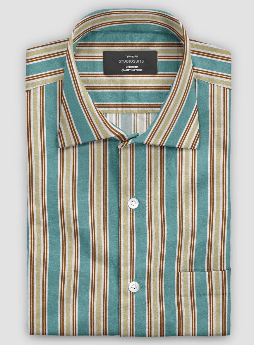 Transform every moment into a delightful experience with our Italian Striped Gray Blue Summer Linen Shirt. Crafted from a blend of cotton and linen, the harmonious hues of this shirt evoke a sense of tranquility, allowing you to feel relaxed and at ease in every situation.