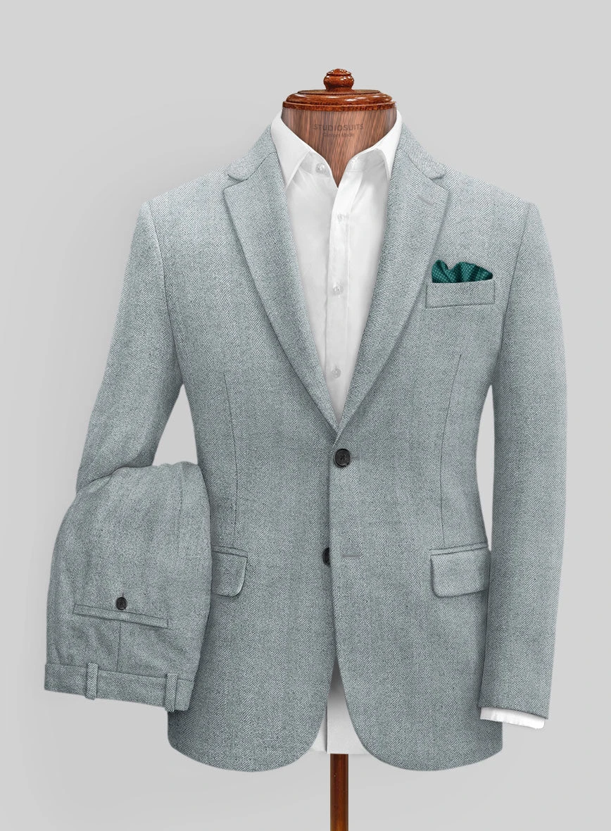 Don a luxurious and stylish piece of couture that will boost your impressive personality to incredible heights of excellence. Tailored with wool blend, our Italian Wide Herringbone Light Tweed Suit has a premium trait with its wide herringbone pattern that offers a choice to excel with your most cherished quality. Moreover, its light blue shade will give your closet a new and fresh perspective. So grab this piece that has quality offering you a chance to be the most stylish person in the room.