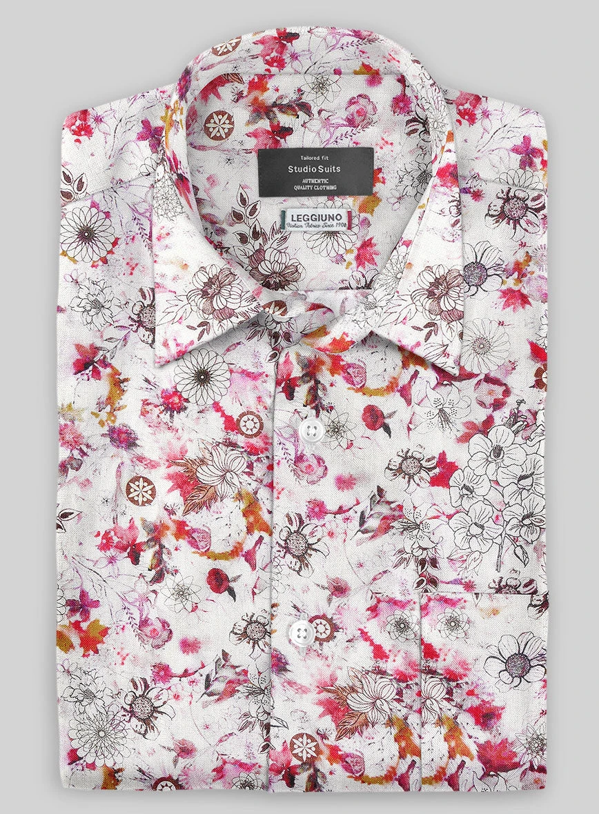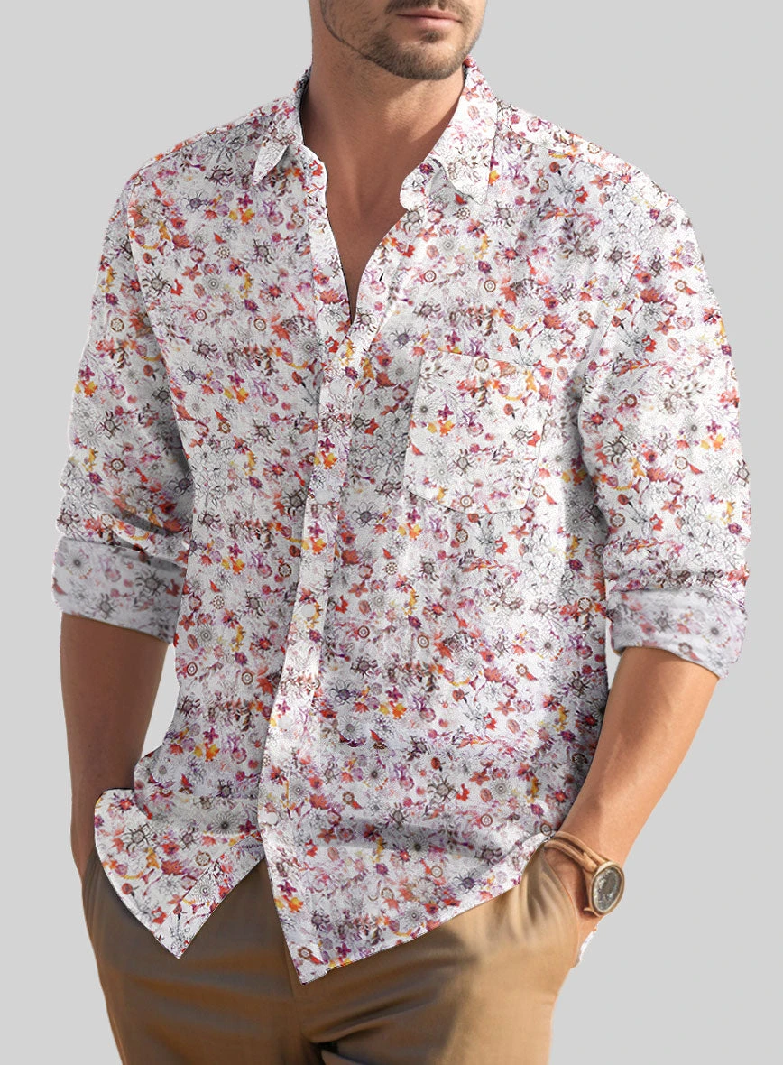 Embrace a style as distinctive and vibrant as our Leggiuno Linen Nara Shirt. Meticulously crafted from pure linen fabric, this shirt is adorned with a captivating pattern of various hues, forming a visually stunning and harmonious tapestry.