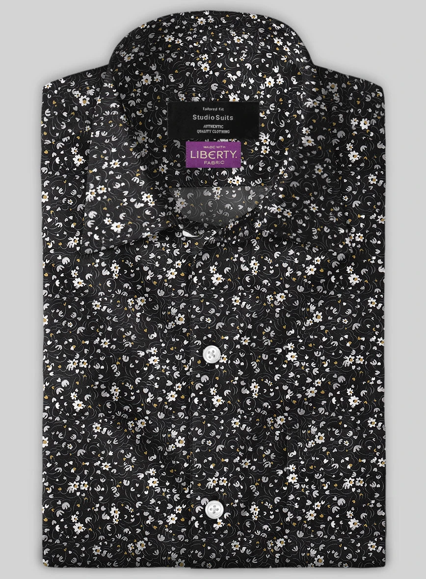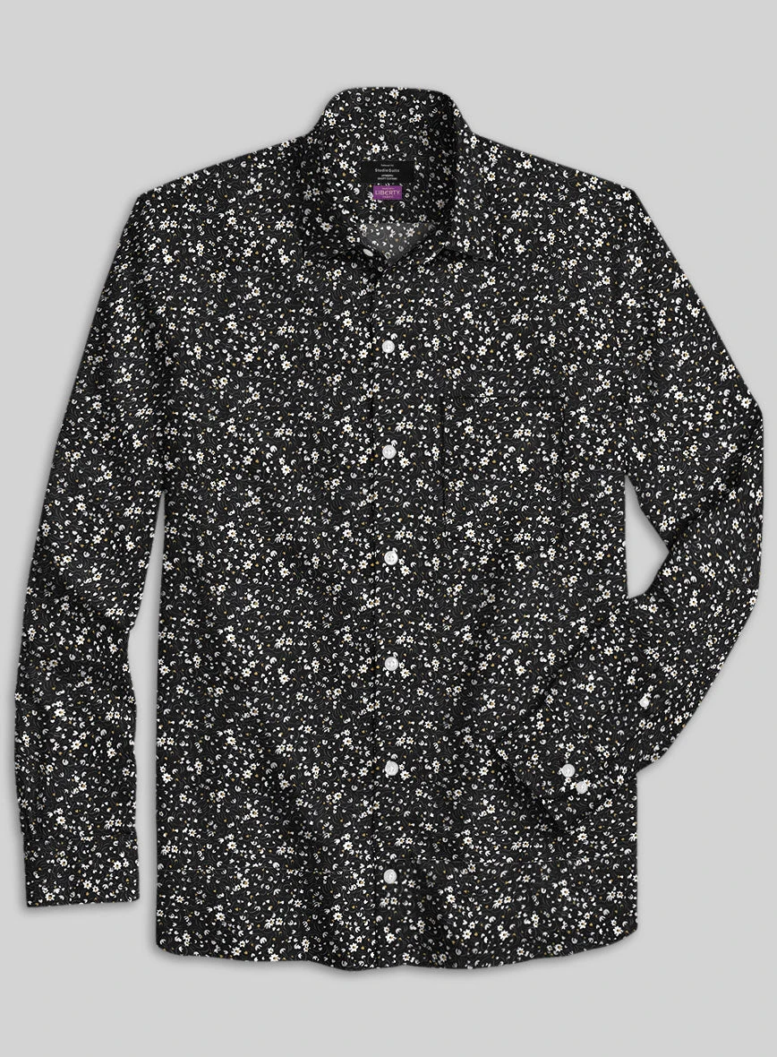Sprinkle the dash of sophistication by pairing our Liberty Peonor Cotton Shirt. Besides, it is crafted from a pure cotton material, which delivers a slim, tenuous and breezy feel with a minimal blooming design over a black shade.