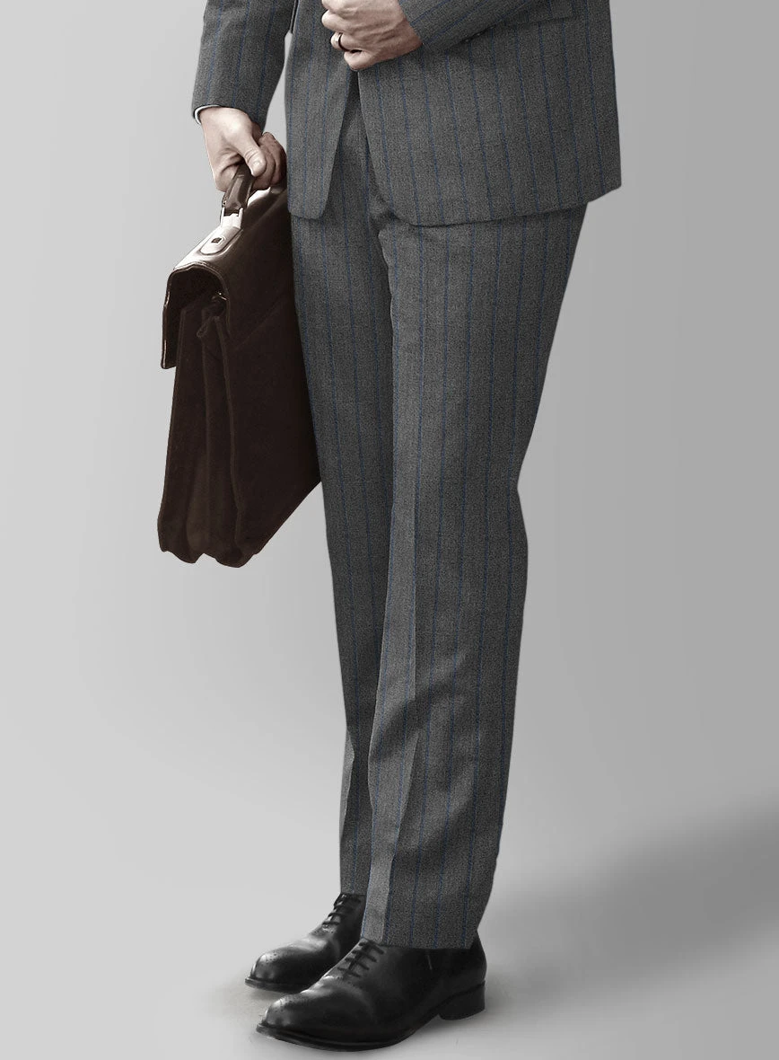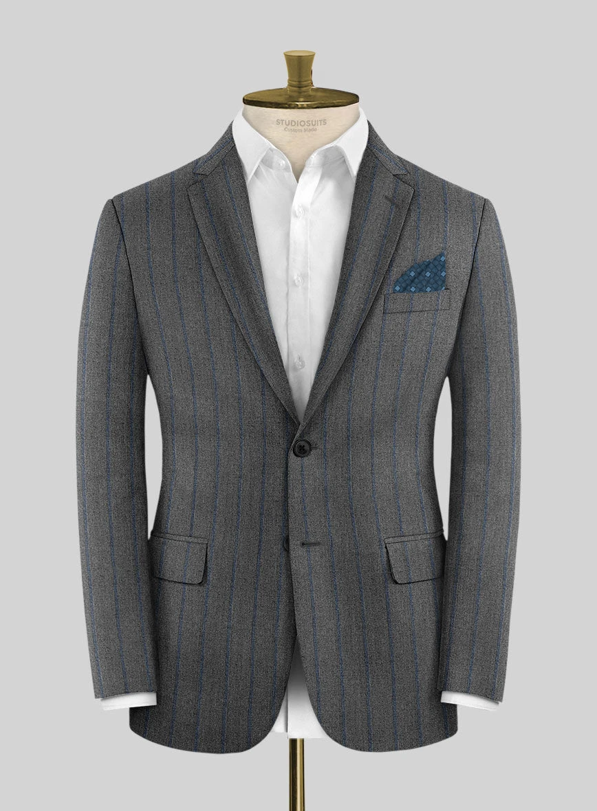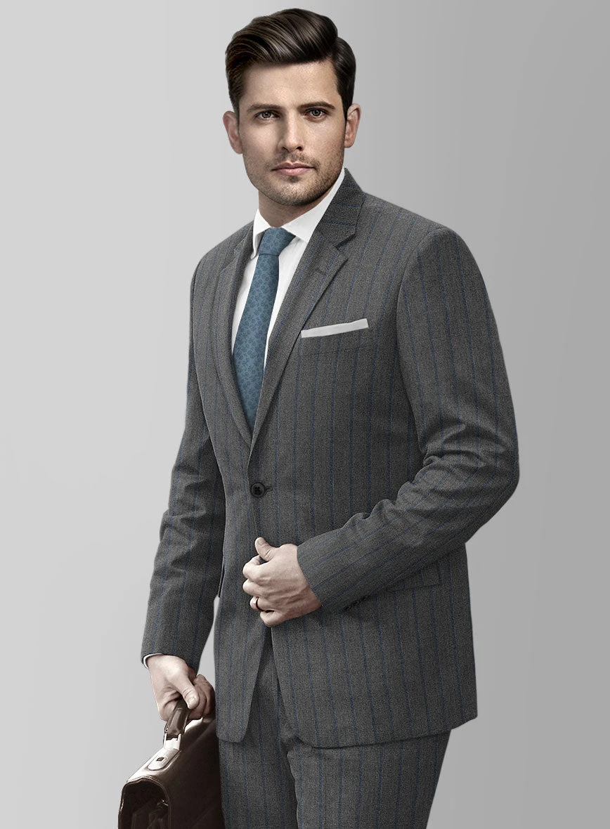 Enhance your appearance with our Loro Piana Antonella Wool Suit, showcasing a refined sense of elegance that defines your classy look. Meticulously crafted from pure wool fabric, The suit displays a polished stripe motif featuring a harmonious interplay of gray and distinguished blue hues. This amalgamation exudes an ageless charm, elevating it to the status of a true sartorial masterpiece. Whether you’re attending a formal office meeting or a refined dinner event, this suit is designed to ensure you capture attention and leave a lasting impression in any situation.