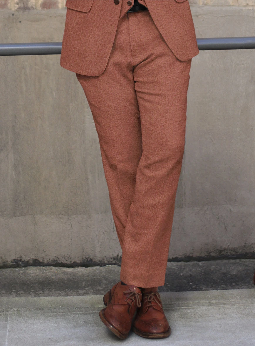 Although fashion trends may come and go, true style endures. Showcase your impeccable taste with our Naples Dark Salmon Pink Tweed Suit. Expertly crafted from premium wool fibers, it boasts a solid texture in a dark salmon pink colorway, which is often associated with vitality and perseverance. If you have a special occasion or a high-class party on the horizon, this suit is sure to make you the center of attention and elevate your formal wardrobe to the next level.