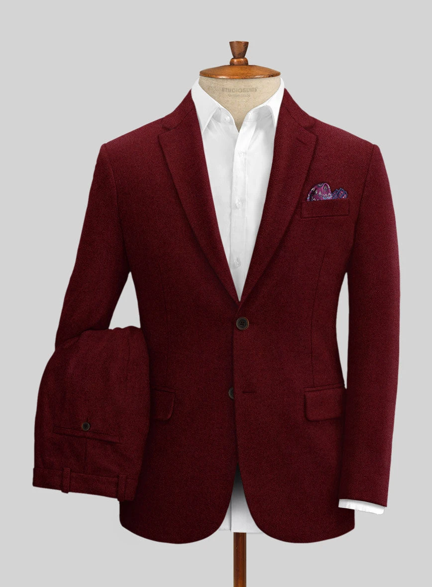 Your suit should be as unique as you are, and with our Naples Dark Scarlet Tweed Suit, it certainly can be. Crafted from virgin wool, this suit appeals to both your sense of sight and touch. Its vibrant dark scarlet colorway and solid texture perfectly complement its plush feel, making it an ideal choice for occasions such as wedding receptions, dinner dates, and more.
