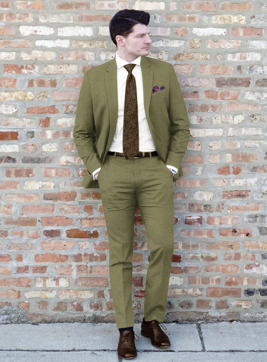 Amp up the grace with the inclusion of our Naples Martini Green Tweed Suit, a true style stalwart. Besides, our suit is crafted from pure wool fabric and offers a soft, comfy feeling which carries a snug warmth that covers up as cozy as elegant with a solid pattern over a green shade. Appeal a chic statement matching with sharp tailoring imparts curvy outlines, which will boldly define the couture while appearing at a glamorous event or ceremonial occasion.