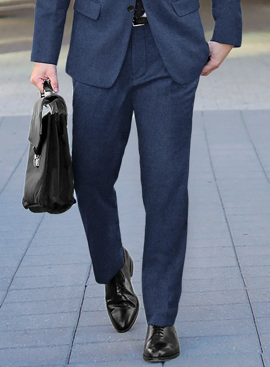 Opt for an iconic piece by donning our Naples Pacific Blue Tweed Pants, which halts the search for a sartorial pleasure. Further, hunt the stylish warmth with our pants, crafted from pure wool cloth, which brings a plush, sturdy finish that draws a generous draping with a solid finish over a blue tone. Finally, commit to a prestigious persona by teaming with precise tailoring that caters to distinctive silhouettes to serve any prominent evening.