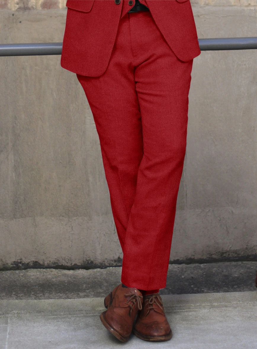 Relaxed and easy, our Naples Red Tweed Pants are one that wont require much thought and styling efforts, will be a nice change from your staples and still cover a wide array of activities. Crafted from pure wool, these pants fashion a pop of red that is always a good idea especially when the season is getting into a Christmas mood, its solid appearance will let you completely enjoy the love and power of the color. These pants will be a perfect match for many styles and occasions just by tagging it with a crisp white shirt, plain pocket square and black brogues.