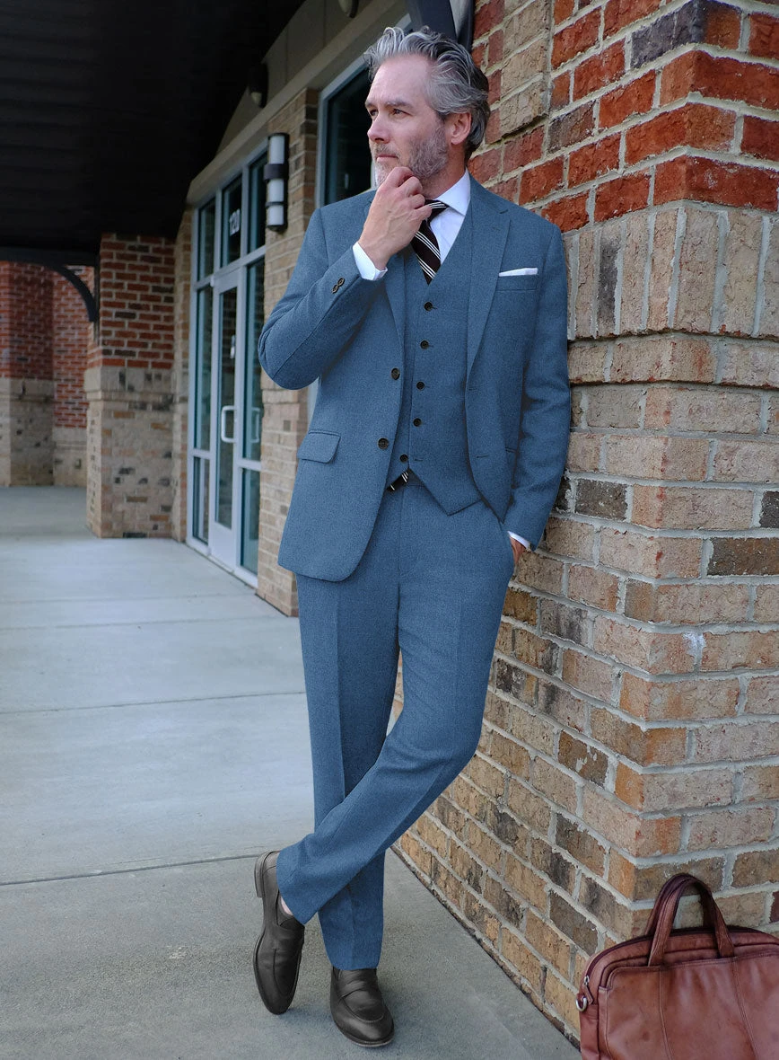 Establish a versatile foundation within your wardrobe by owning our Naples Saga Blue Tweed Suit. Besides, the suit is made from pure wool material that bestows a gentle, tenuous touch with amicable smoothness exuding a gracious heat, including a solid pattern over blue color. Nevertheless, combining precise tailoring with polished fabric brings a genuine draping that leads toward bold profiles, which will make a mark while attending noble occasions.