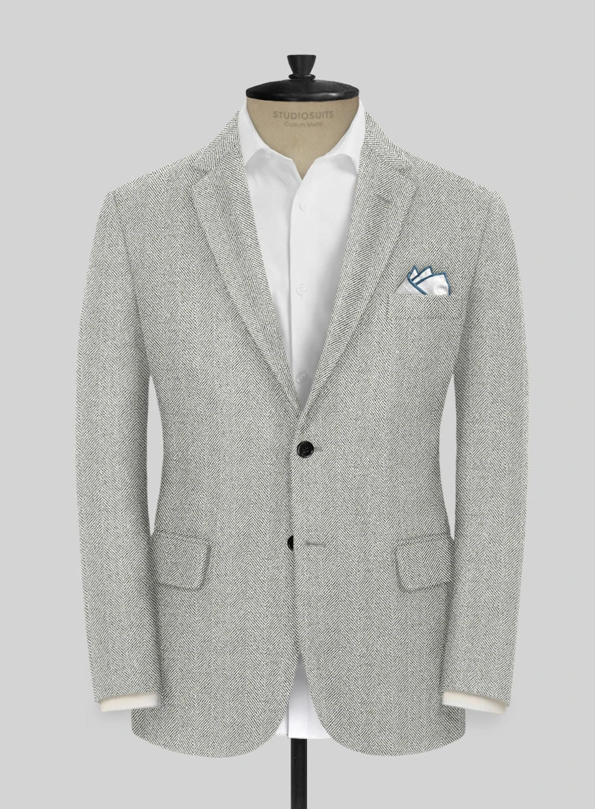 - Naples Wide Herringbone Light Gray Tweed Fabric