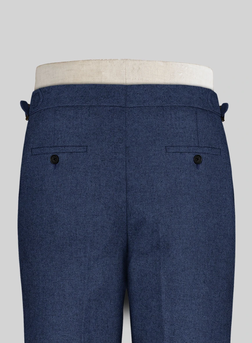 The Rope Weave Persian Blue Highland Tweed Trousers are the smartest dress that most men will need outside professional offices. Crafted from wool, the trousers are beautifully tailored for a timeless appearance so that nothing can knock the blue pants in fine tweed.