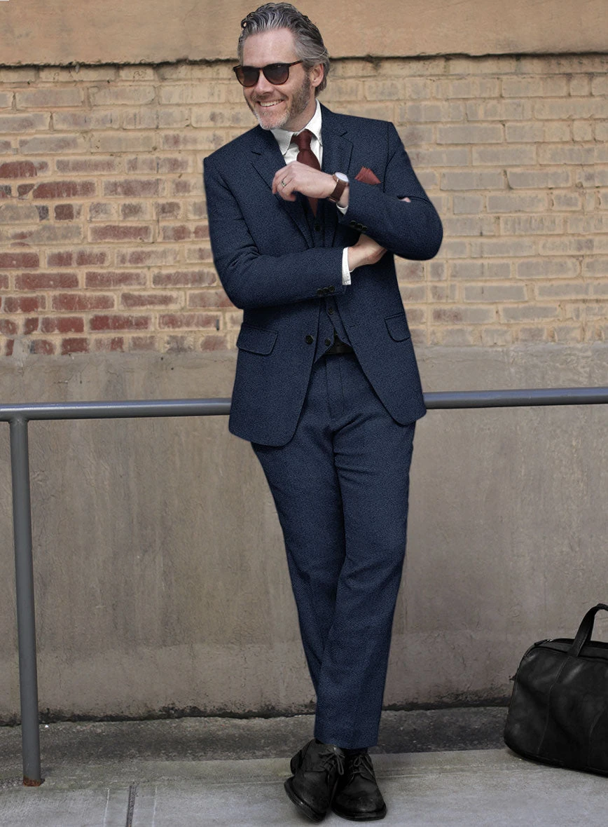 Look your ultimate cool and dandy this winter by wearing our essential Royal Blue Heavy Tweed suit. Crafted from wool, this tweed suit is a must-have in your power dressing wardrobe, which will be perfect to wear at work. Pair it with a matching waistcoat, a crisp white shirt and tan derby shoes to refine your look further.