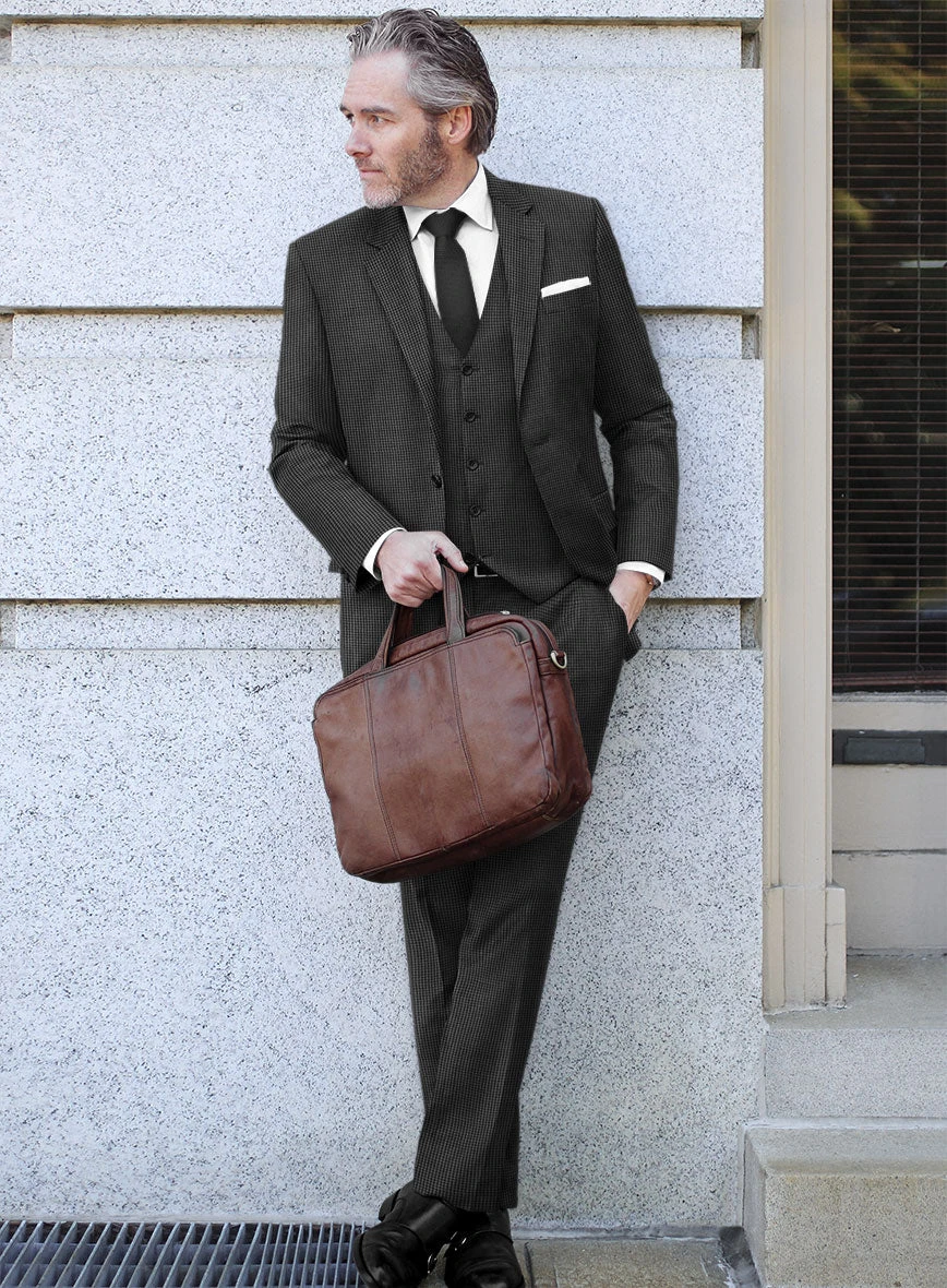Achieving a super dapper look is a doddle with our sophisticated Scabal Ghru Houndstooth Gray Wool Suit. Constructed from high-quality wool material, it showcases a tiny black houndstooth design complemented with gray cloth, ensuring you’ll receive compliments on this stylish attire. Whether you’re conquering the office workday with class, enjoying the role of a wedding guest, or embracing style at an outdoor event, this suit is perfect for any occasion.