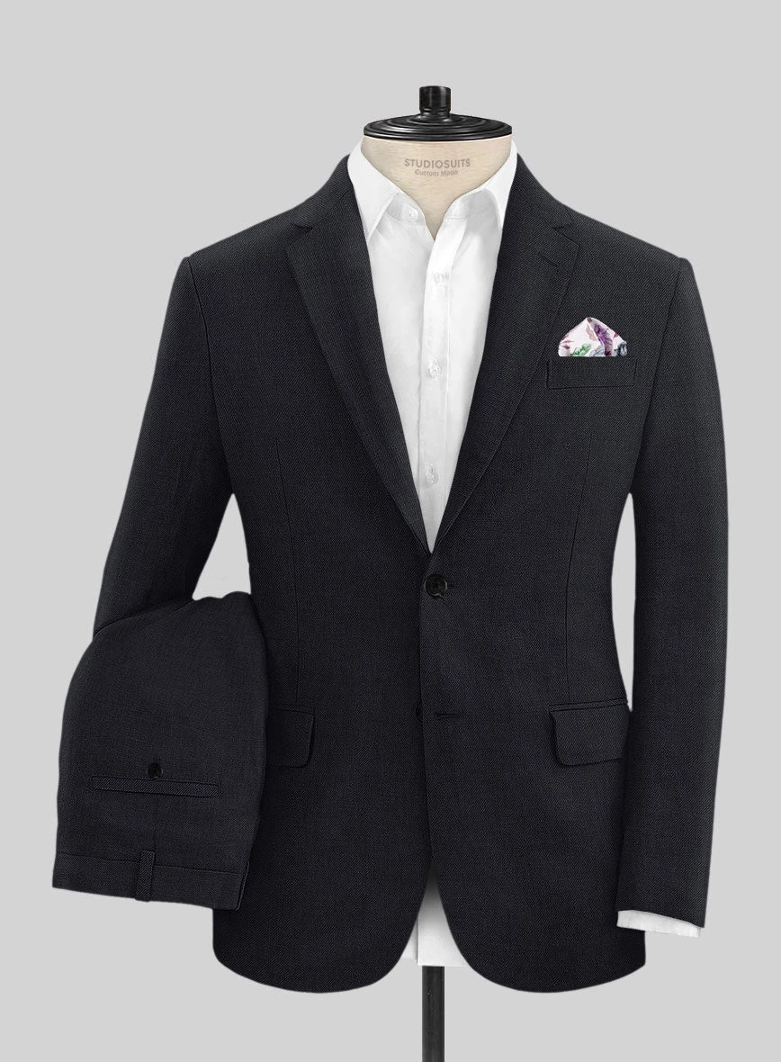 Nothing beats our Solbiati Art Du Lin Dark Blue Linen Suit, which is designed to capture the attention of the most stylish and masculine individuals. This utmost suit elevates your wardrobe, as it is tailored with high-quality linen fabric resulting in a pale, dark blue hue that exudes comfort and charm. Additionally, the suit is expertly tailored with meticulous attention to detail, creating the perfect fusion of traditional elegance and modern fashion sense to flatter your style.