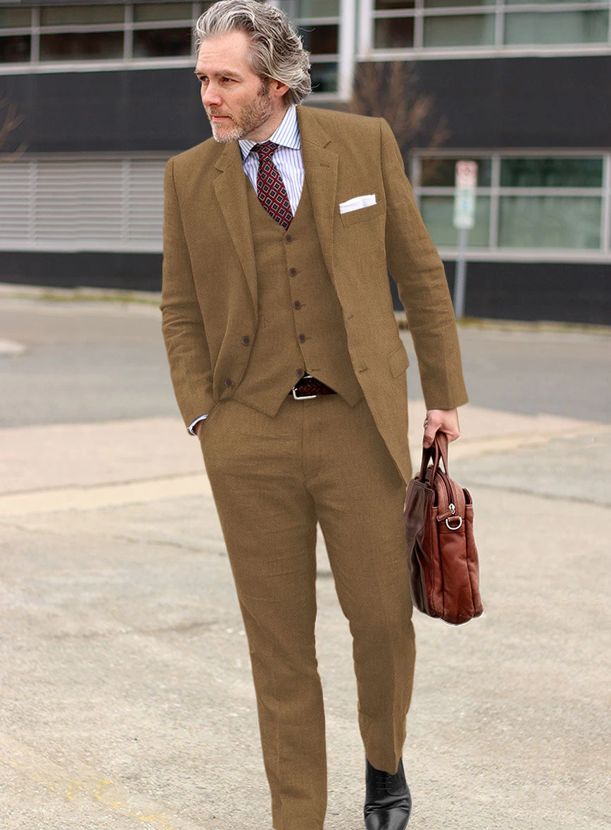 Renowned for its timeless designs and focus on quality, our Solbiati Art Du Lin Tan Linen Suit is a must-have addition to your wardrobe. Made from soft and breathable linen, it brings style, elegance, and comfort to your attire. The neutral tan shade, woven in a plain weave, adds a modern vibe to the suit, making it a versatile choice for any event, from races and proms to ceremonies and celebrations. With its sartorial edge, this suit is sure to make a fashion statement.