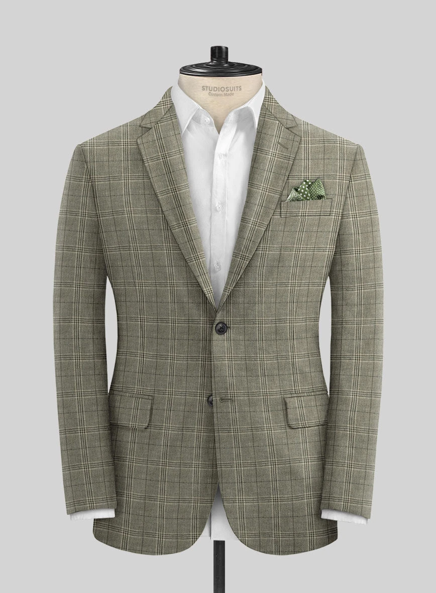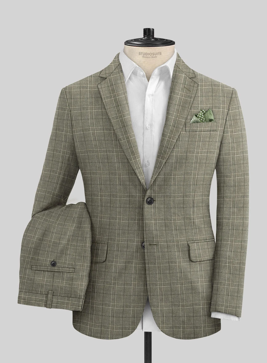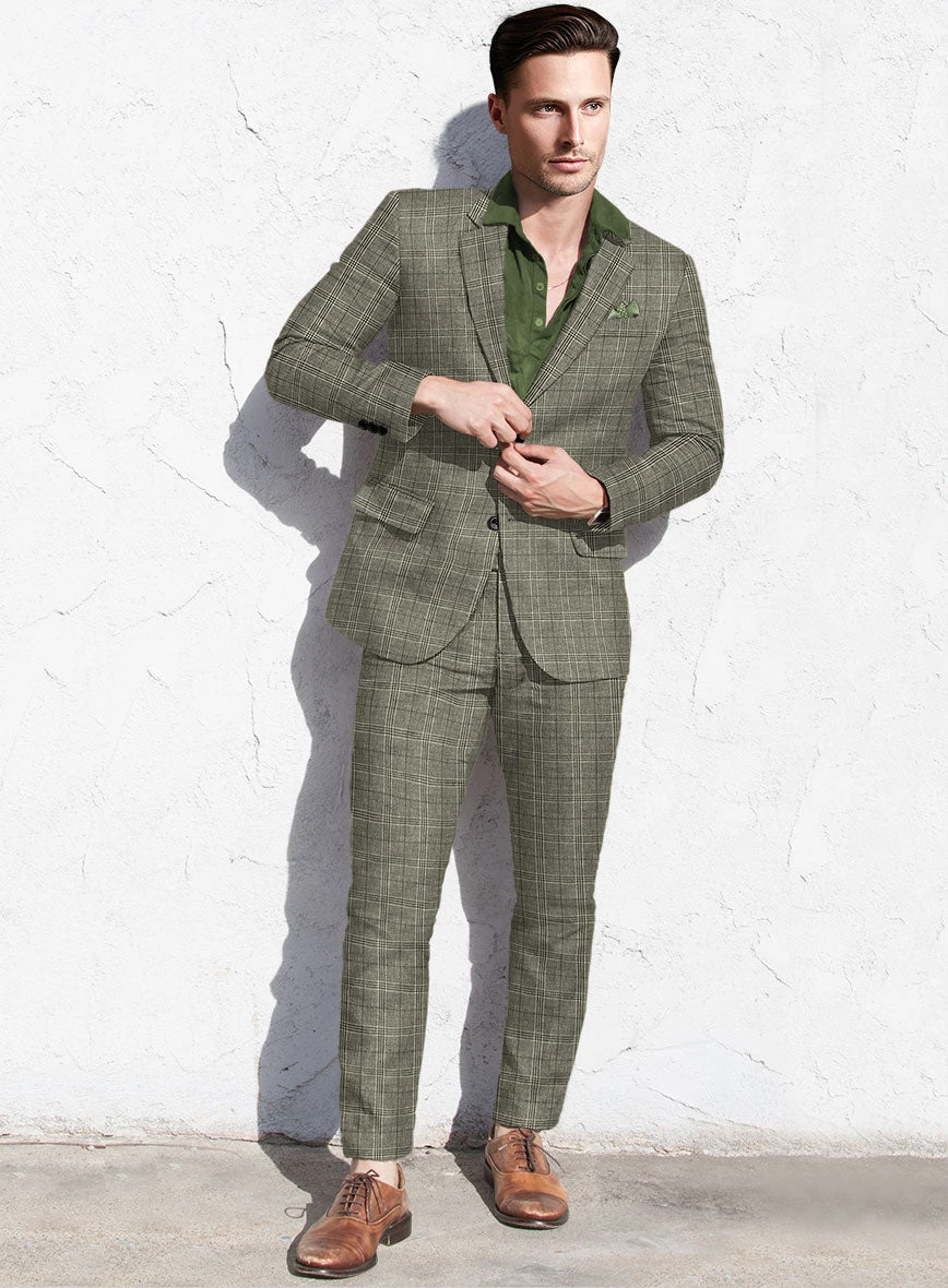 Make a sartorial choice for your lifestyle that demands you to be a perfect demeanor. Tailored with 100% linen, our Solbiati Linen Gespar Suit is designed in a checks pattern in a green color contrast which looks super prominent when worn while giving you comfort, especially on hot days. So give a makeover to your closet with this piece that will be a unique collection and an on-trend fashion trait.
