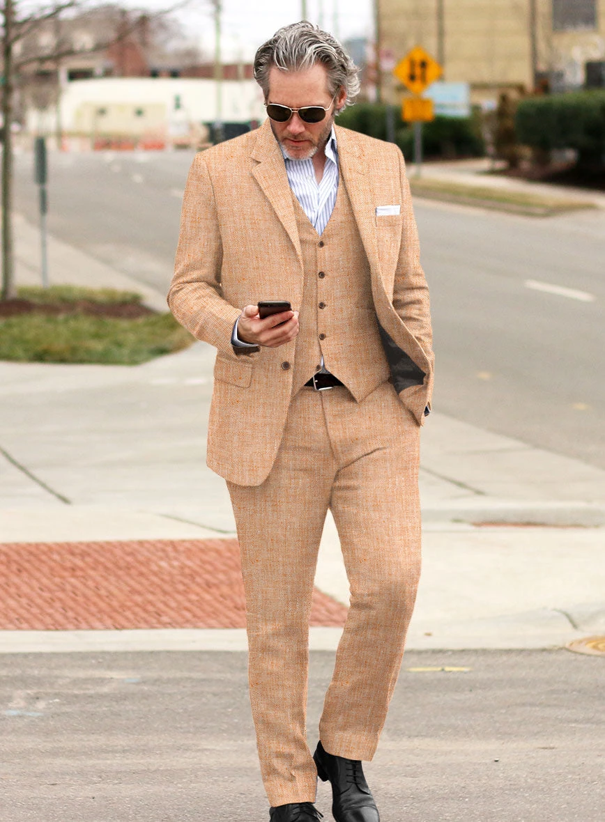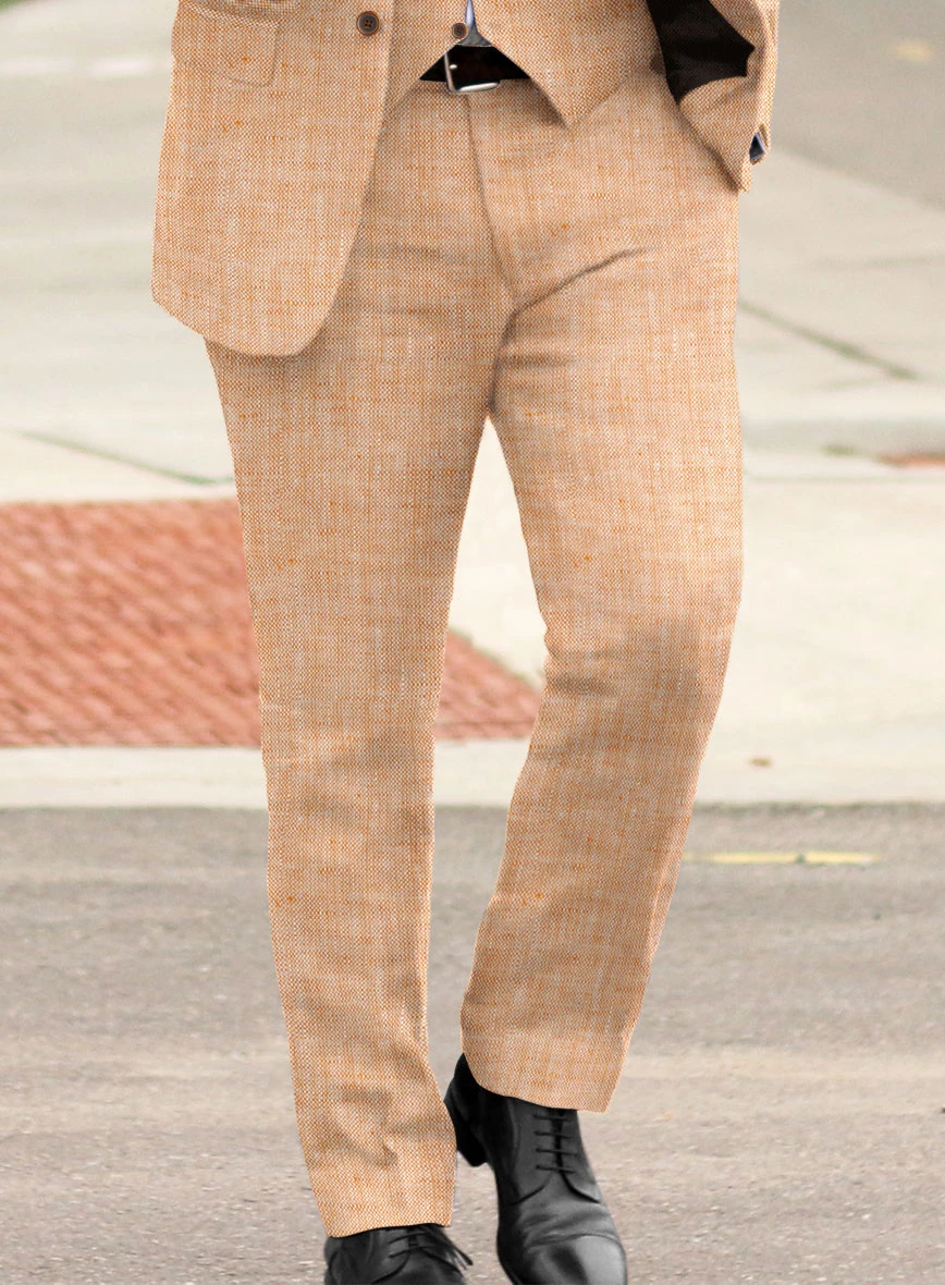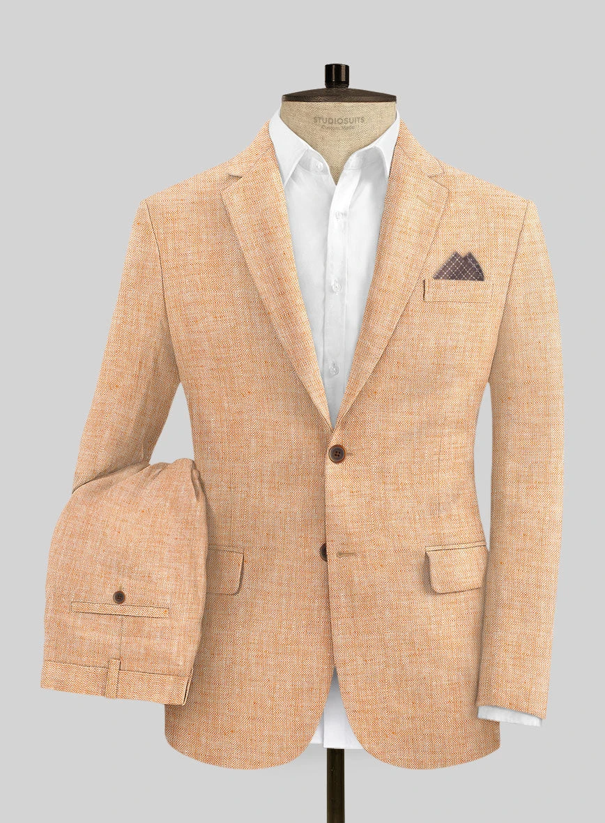A highly refined investment piece which will be a smart and fashionable choice for important occasions. Crafted from pure linen, this melon linen suit gives a contemporary touch to both formal and casual ensembles. Combine it with a matching waistcoat, a crisp white shirt and dark brown derby shoes.