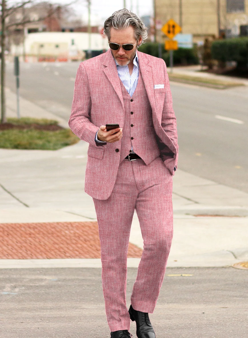 Flaunt vigorous look at any occasion with our Solbiati Rose Linen Suit leaving behind a powerful impression. Crafted from pure linen, this finely engineered suit is a refined addition to your suiting repertoire. Unite it up with a matching waistcoat, a crisp white shirt and tan polished shoes.