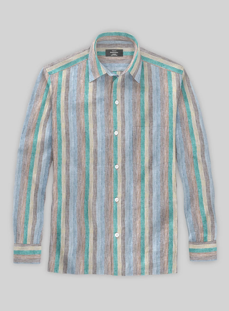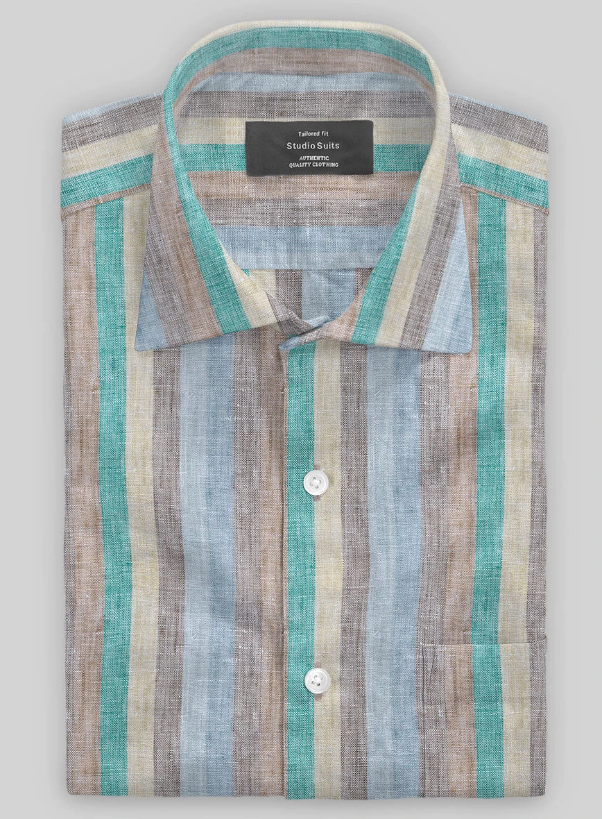 Make your weekends more stylish by choosing our Stavan Stripe Linen Shirt with multicolor pops for a modern, elegant, and glamorous feel. The bold stripe showcases a contemporary look effortlessly.