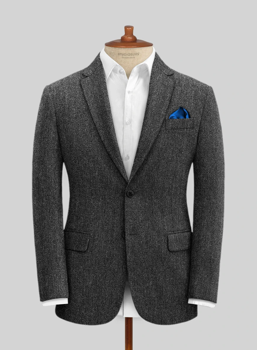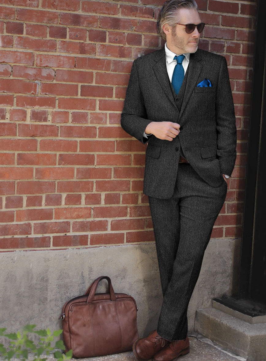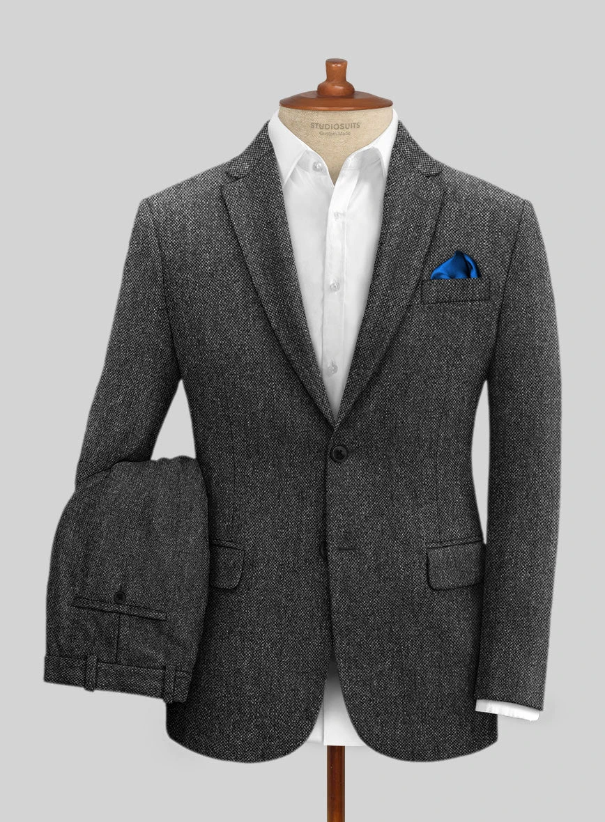 Indulge in timeless sophistication with our Stone Charcoal Tweed Suit, effortlessly blending classic charm with modern versatility. Crafted from pure wool, this suit exudes durability and refinement, courtesy of its solid charcoal pattern. The thick, coarse texture not only adds warmth but also ensures a distinguished silhouette, perfect for any occasion. Whether dressed up for formal affairs or down for a more relaxed vibe, this suit effortlessly elevates your sense of style with its sharp, streamlined lines.