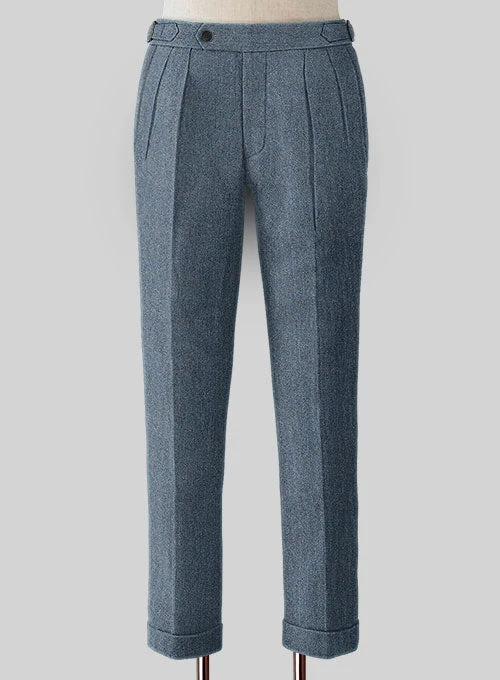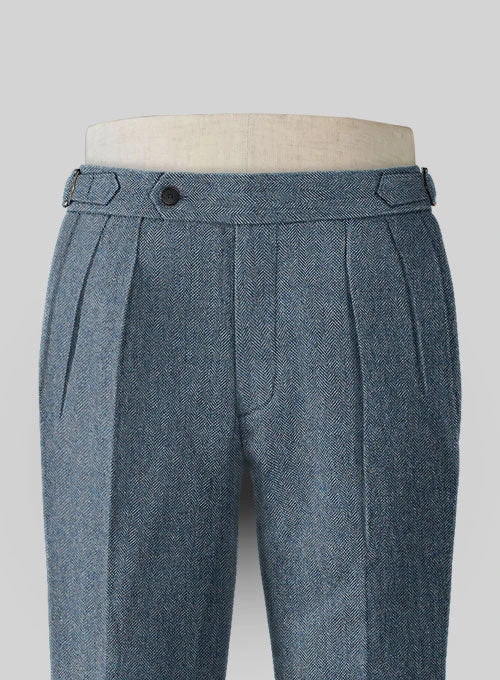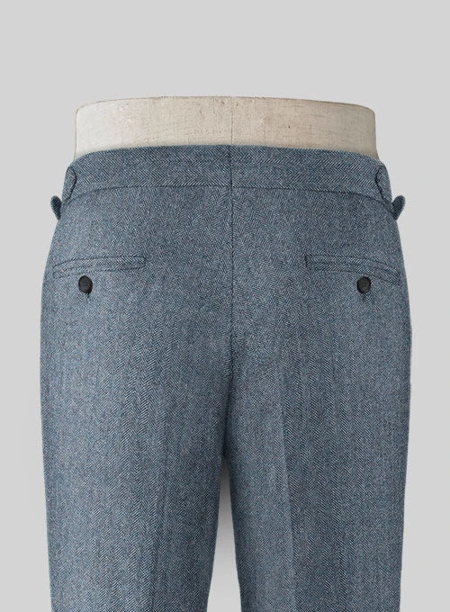 Both classic and versatile, our Vintage Herringbone Blue Highland Tweed Trousers are surely going to take you through the seasons with stylish ease. Crafted from wool, these tweed pants are rich in quality and lend a distinctly bespoke edge which makes it a suave choice.