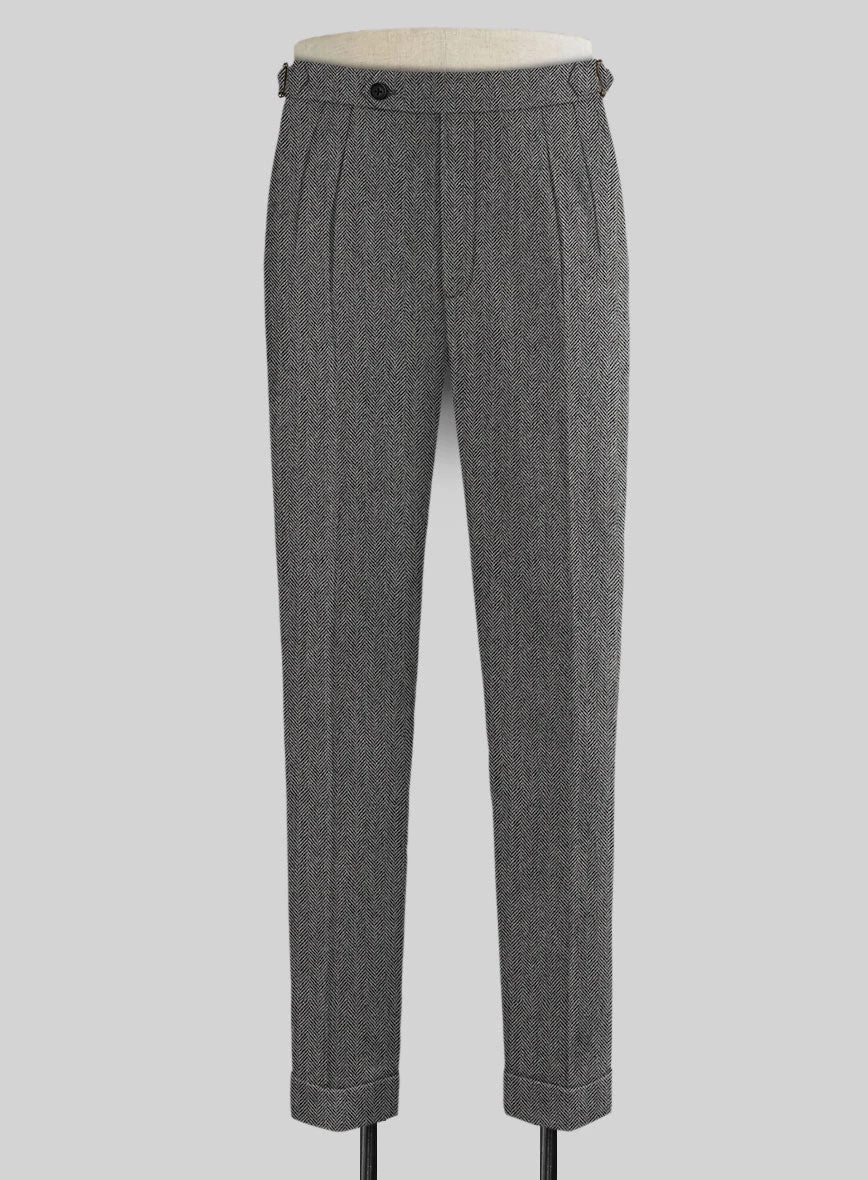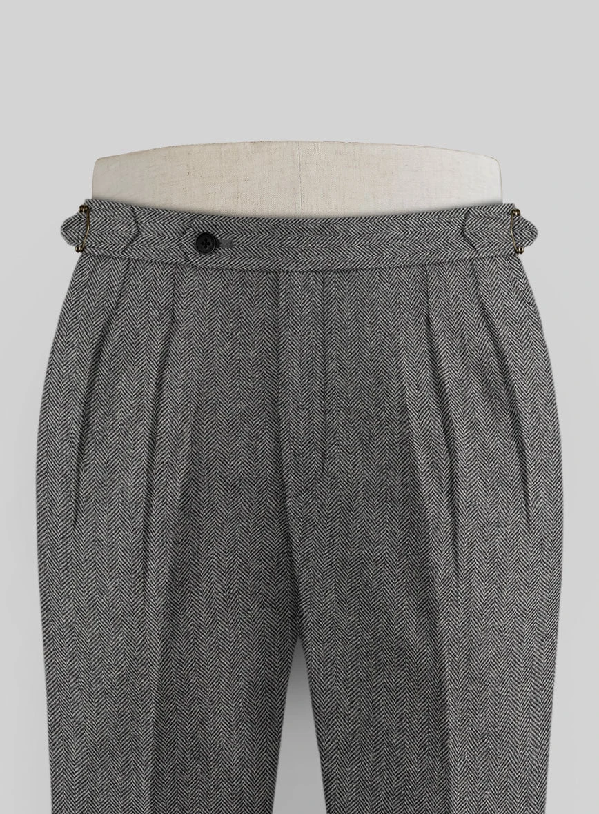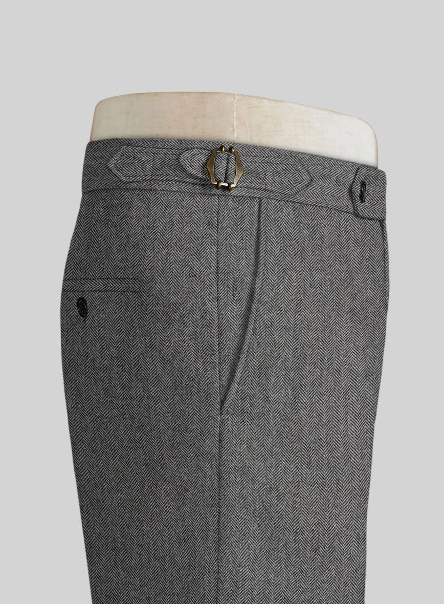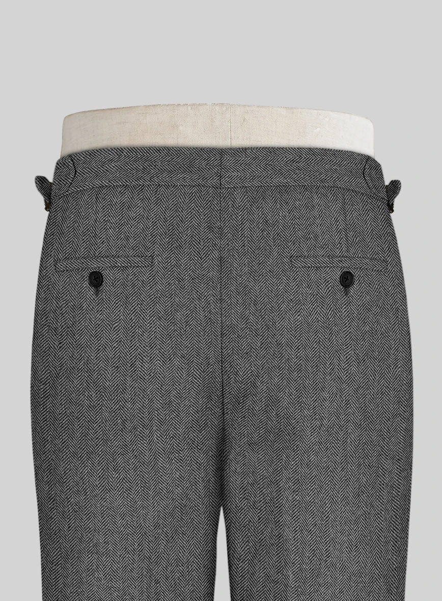 Smarten up your look by wearing these Vintage Herringbone Gray Highland Tweed Trousers. Crafted from wool, the fabric features herringbone pattern that will add a subtle twist to your tailored look.