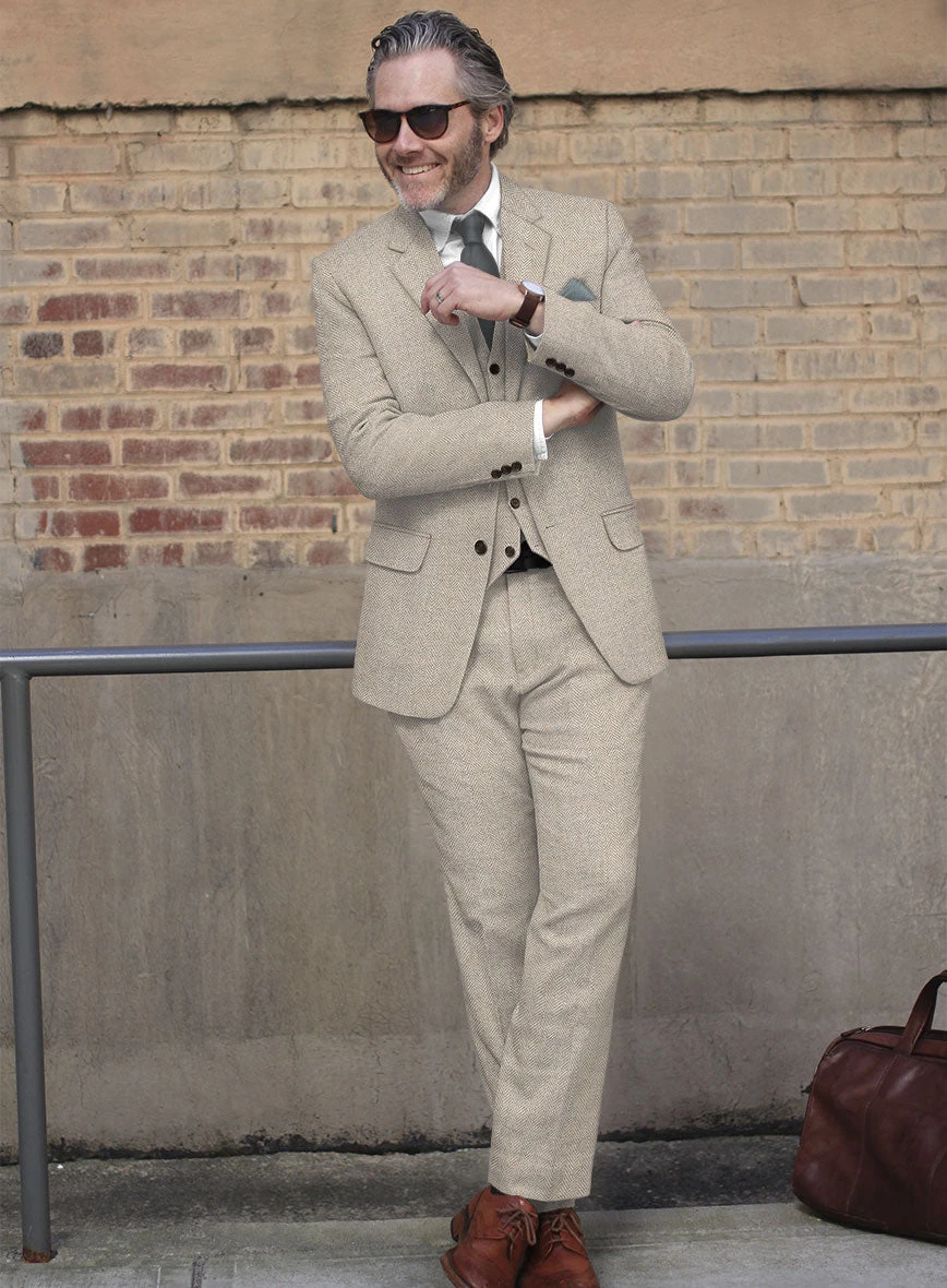 A top notch choice for stylishly bold modern gent, the Vintage Herringbone Light Beige Tweed suit is contemporary and modern in its appeal. Crafted from Premium Tweed Wool, our tweed suit will surely elevate your formal demeanour.