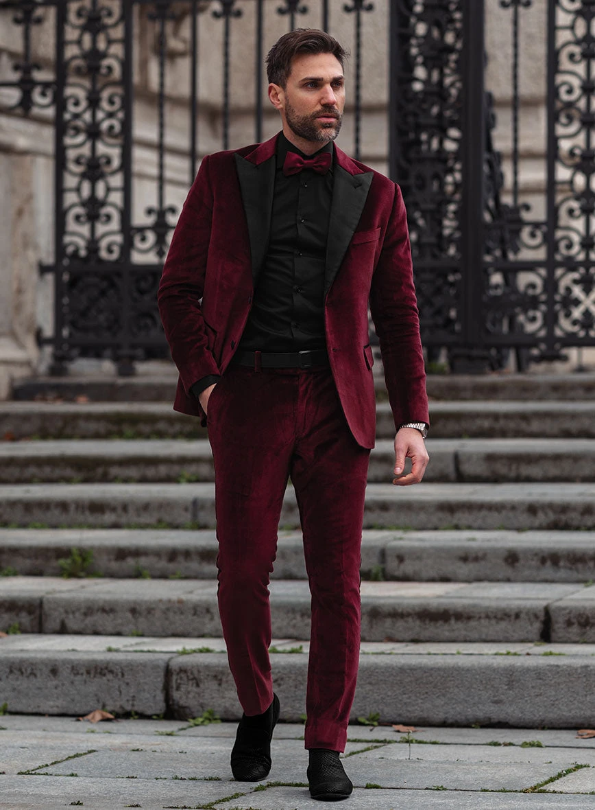 Indulge in a display of modern panache and radiate confidence with our Wine Velvet Tuxedo Suit, elevating your style to the peak of sophistication. Crafted with pure cotton, this tuxedo suit envelops you in a luxurious wine hue and velvet texture, bestowing upon you a timeless look that captures everyone’s admiration. With this tuxedo suit, attest to your exquisite taste in fashion and leave a mark of elegance on a momentous occasion, for it is the pinnacle of sartorial excellence.